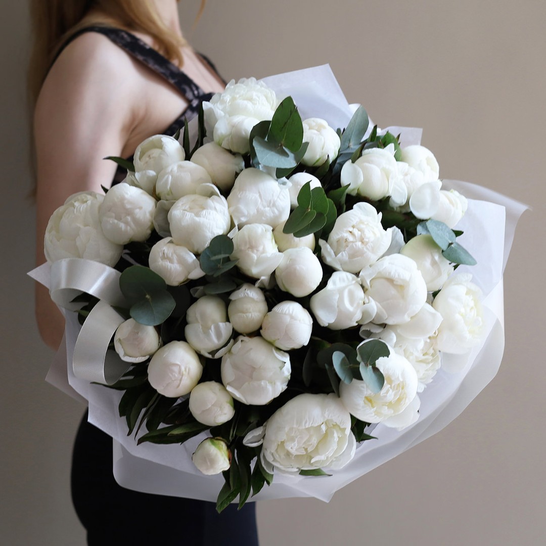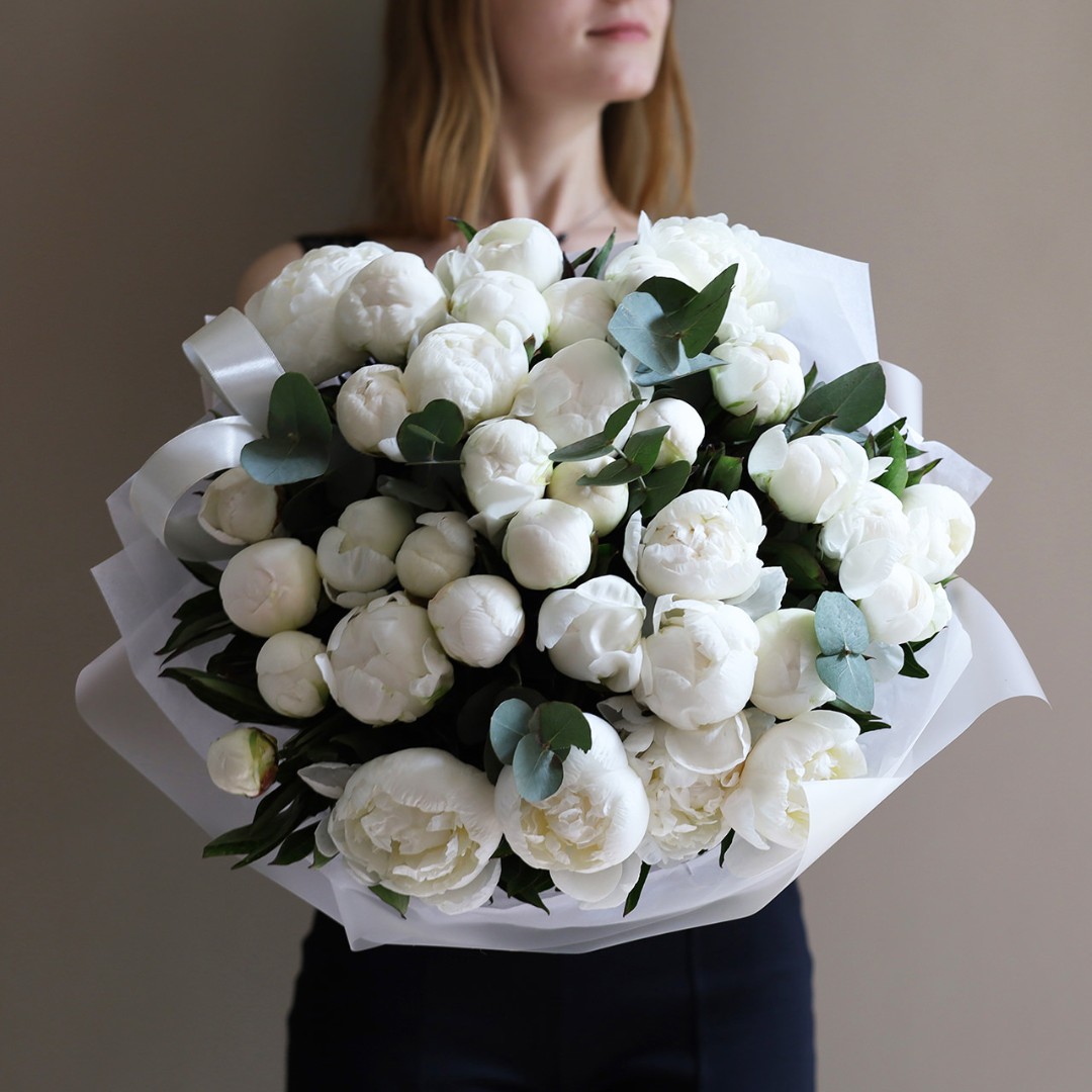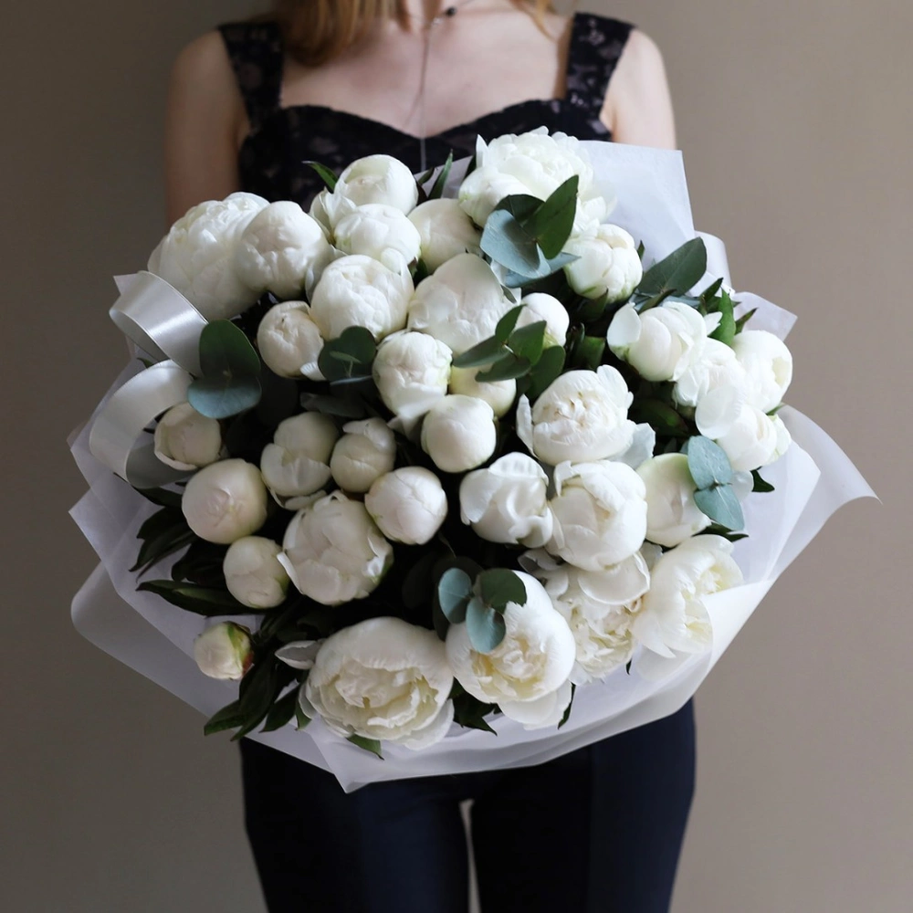 Букет белых пионов сорта Мадам Клод. Пионы на заказ. Пионы букет с доставкой. Вы можете выбрать любое количество цветов указанное в перечне к данному букету.