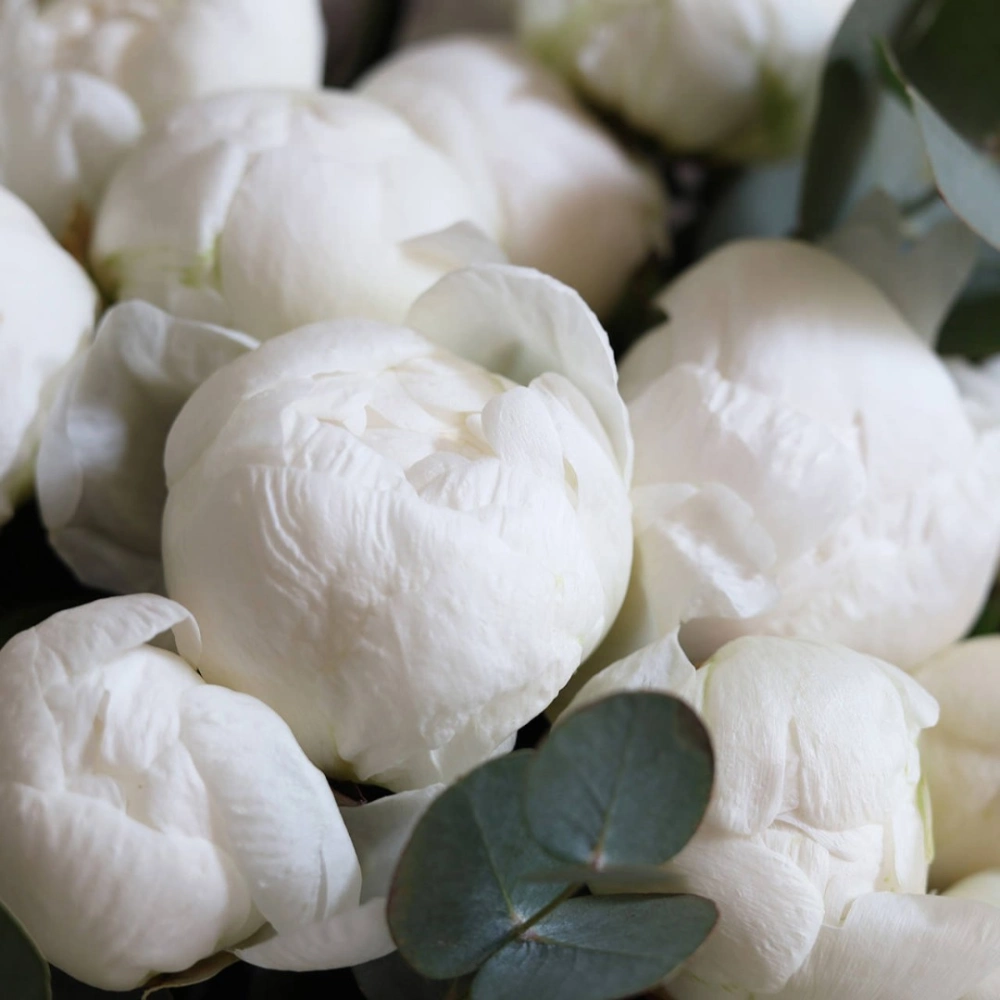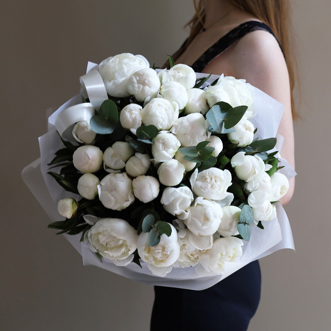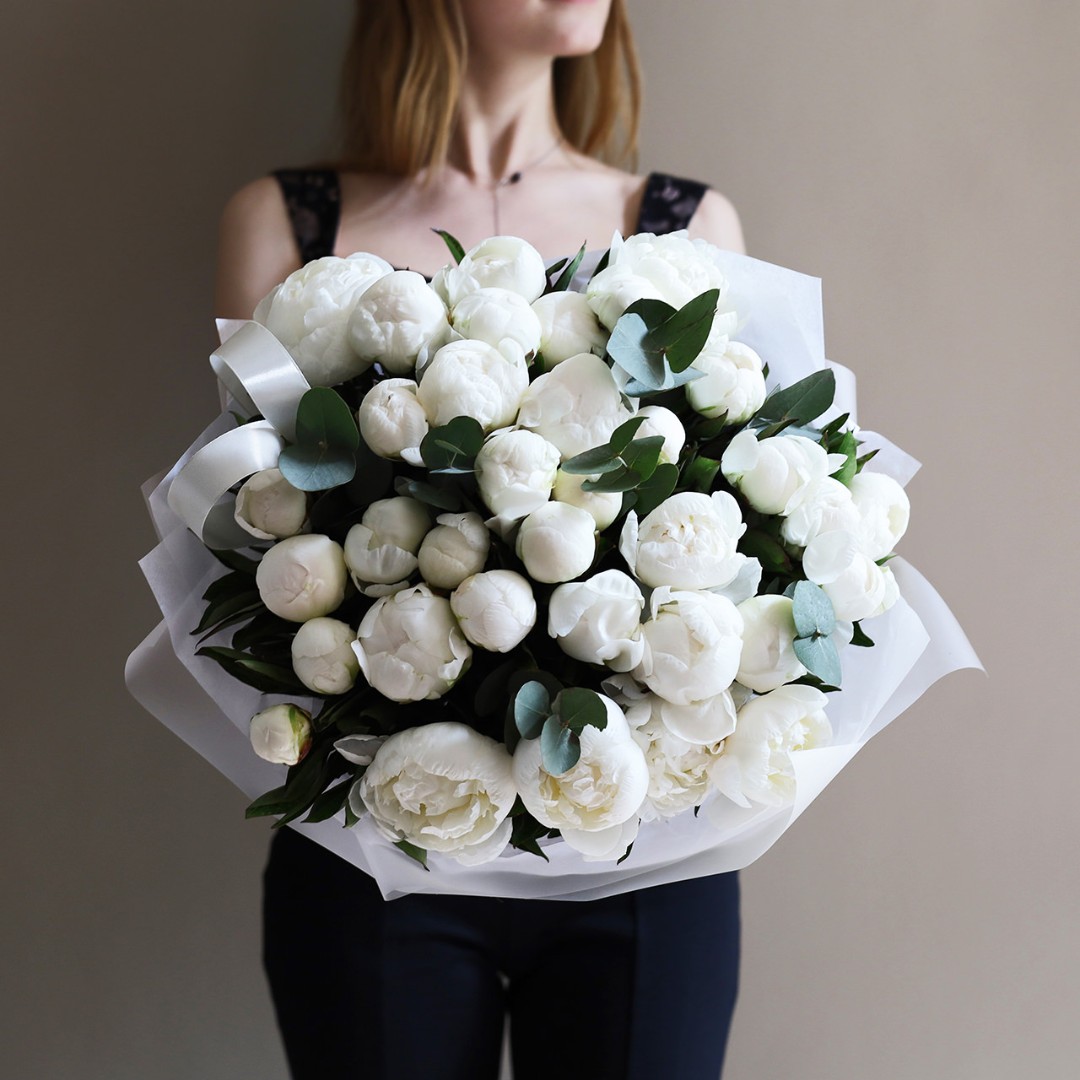 Букет белых пионов сорта Мадам Клод. Пионы на заказ. Пионы букет с доставкой. Вы можете выбрать любое количество цветов указанное в перечне к данному букету.