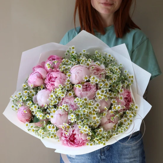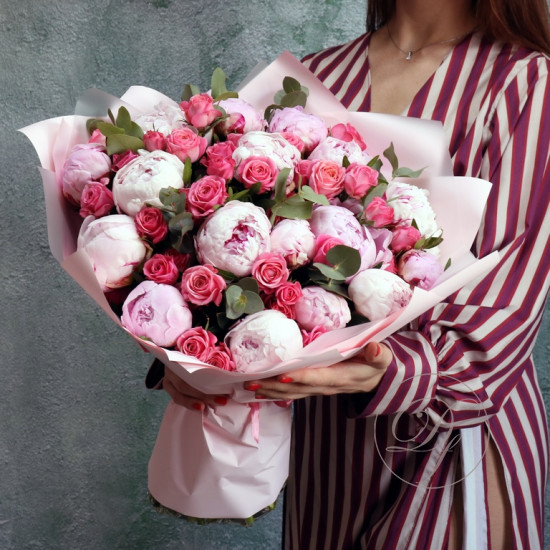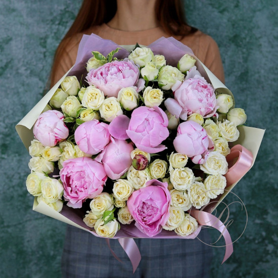 Дуо-букет с пионами и маттиолой