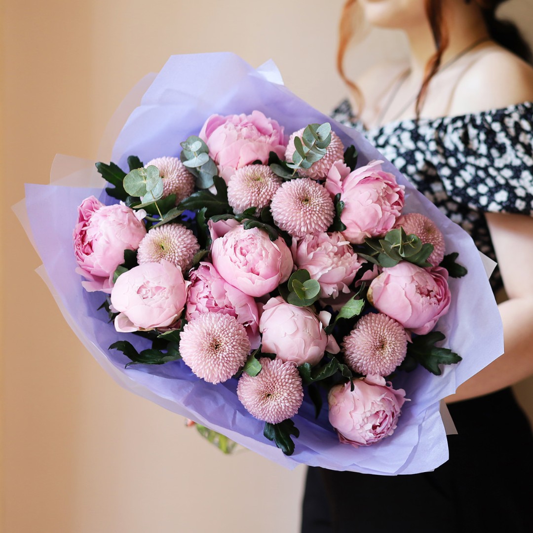 Пионы с хризантемами Момоко