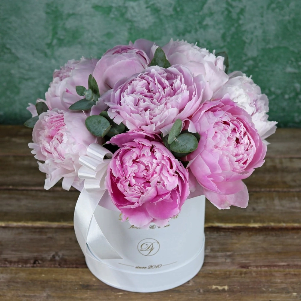 Пионы в коробке Dakota flora. Пионы в коробке купить. Пион гардения. Цветы в коробках это композиции, составленные с использованием специальной губки Oasis (пиафлор) которая пропитана водой. Для того чтобы цветы дольше оставались свежими, добавляйте в нее немного воды каждый день.