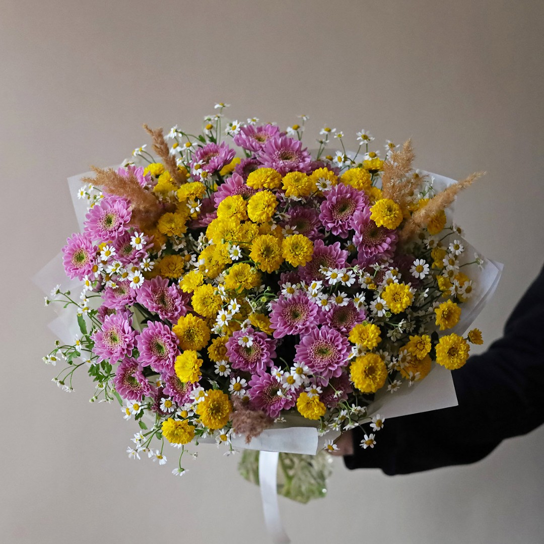Погрузитесь в мир нежности и естественной красоты с нашим уникальным полевым букетом! Каждый букет — это гармония цветов, собранных с любовью и заботой, которые перенесут вас в солнечные луга и свежие поля.