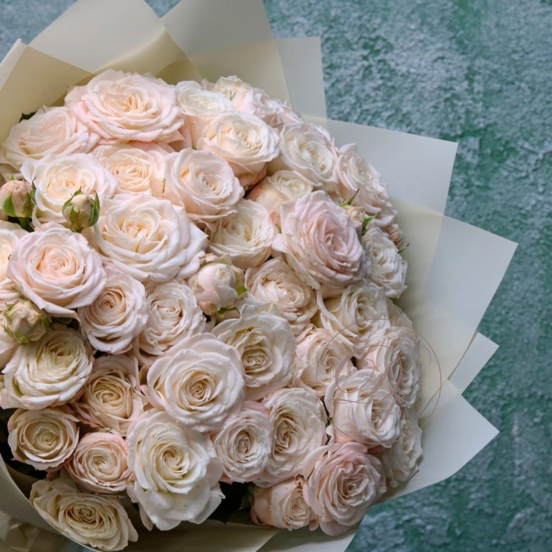 Букет из пудровых пионовидных роз Бомбатик. Вы можете выбрать любое количество цветов указанное в перечне к данному букету.