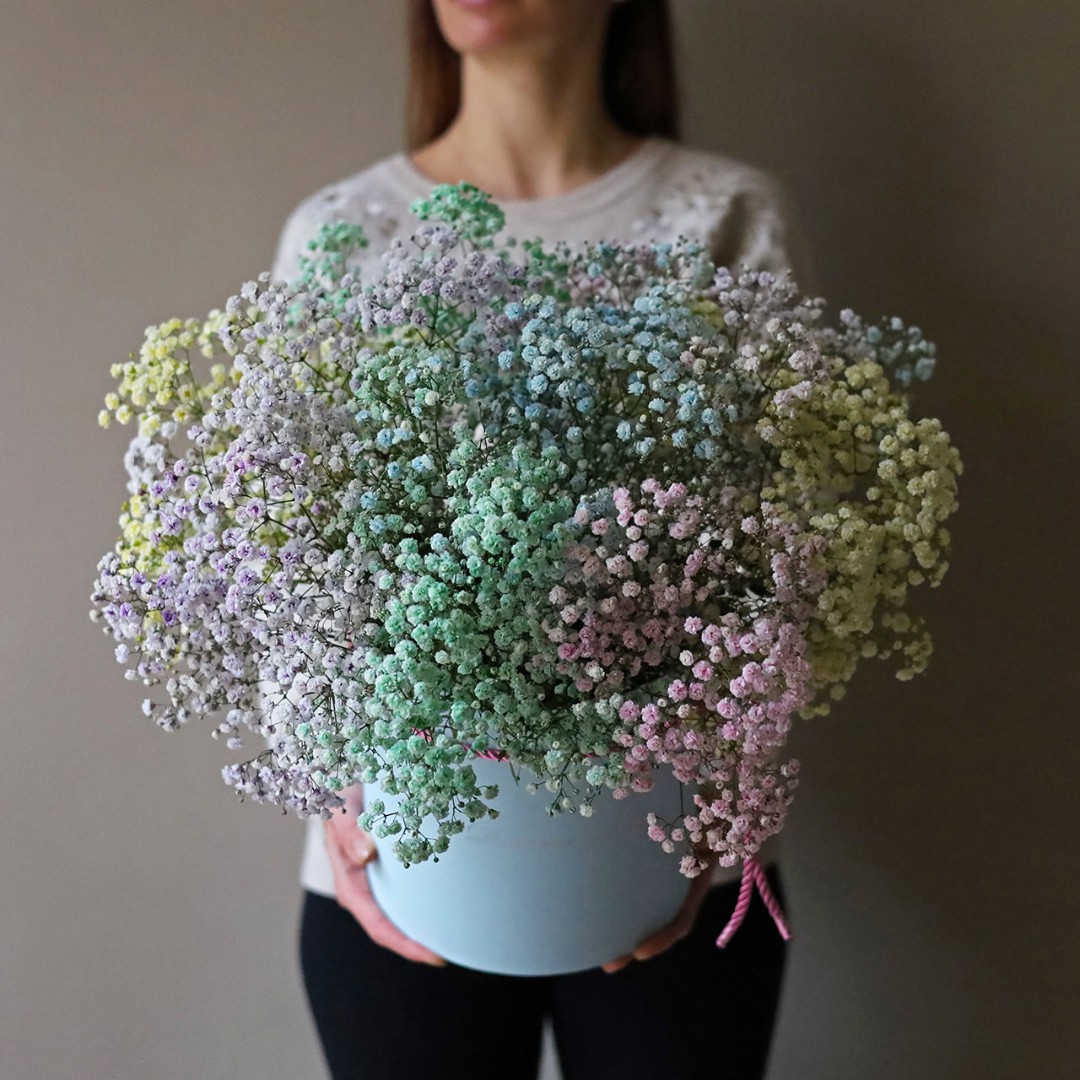 Разноцветная гипсофила в коробке