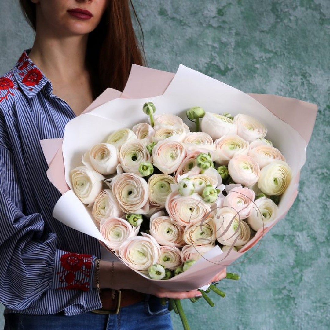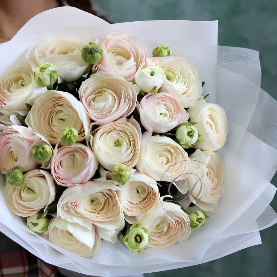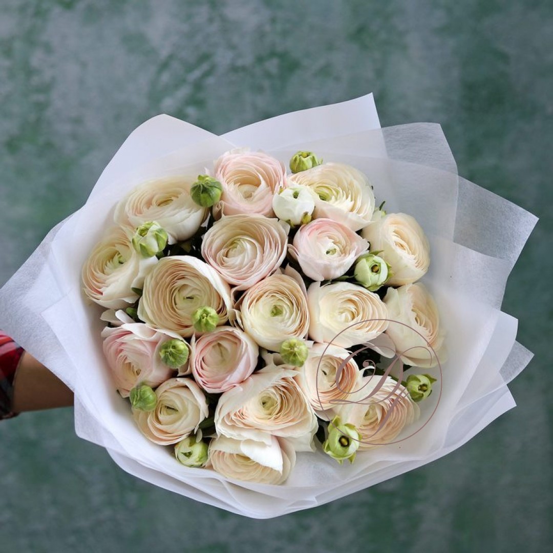Букет из Ранункулюсов Ханой. На фотографии букет из 45 ранункулюсов. Вы можете выбрать любое количество цветов указанное в перечне к данному букету.