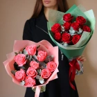 Букет из роз с зеленью эвкалипта. Вы можете выбрать любое количество роз, указанное в перечне к данному букету.