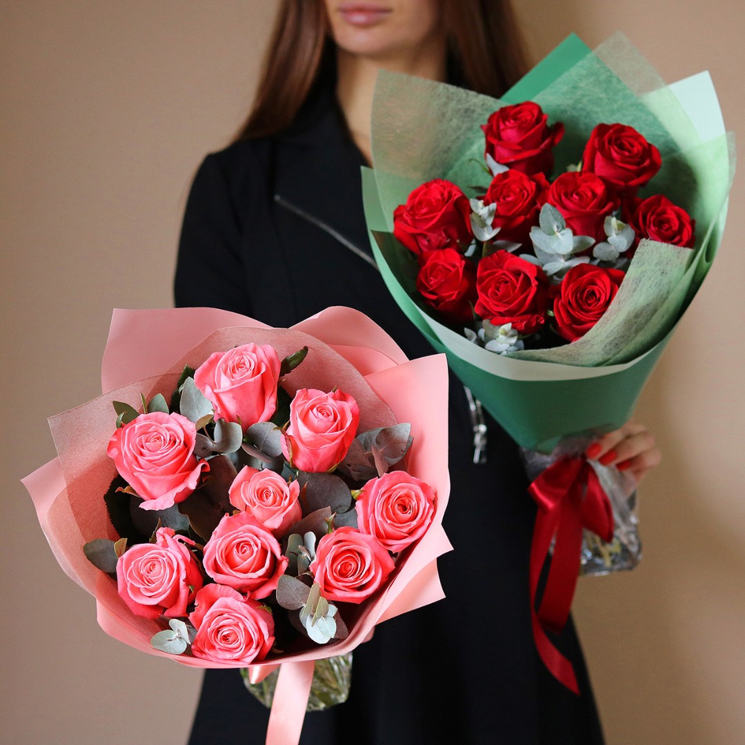 Розы с эвкалиптом букет