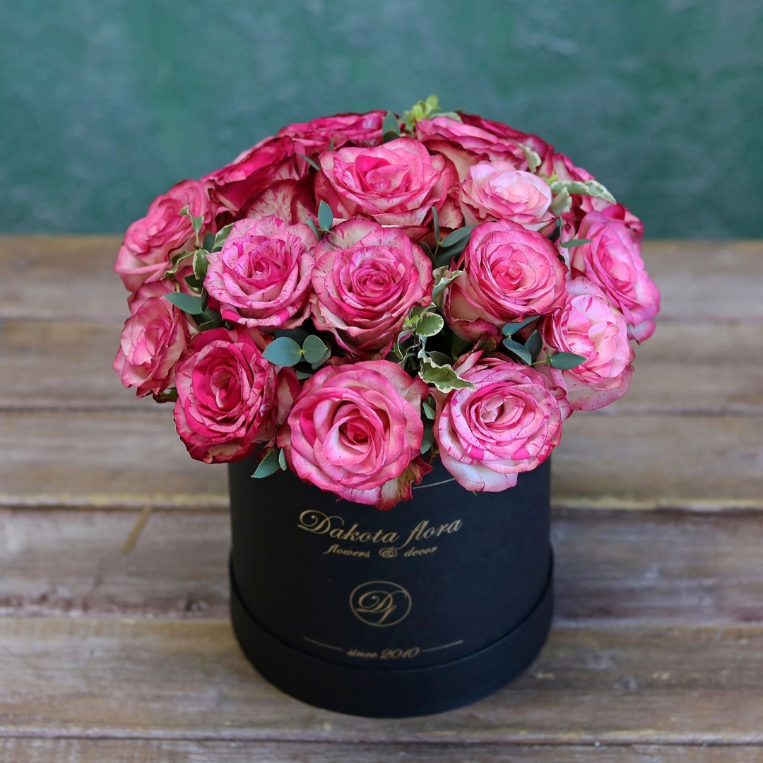 Цветы в коробках это композиции, составленные с использованием специальной губки Oasis (пиафлор) которая пропитана водой. Для того чтобы цветы дольше оставались свежими, добавляйте в нее немного воды каждый день.