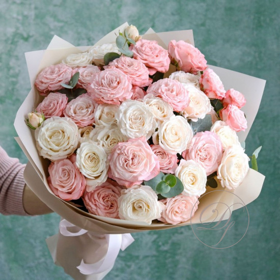 Букет из пионовидных роз Бомбатик. Вы можете выбрать любое количество цветов указанное в перечне к данному букету.
