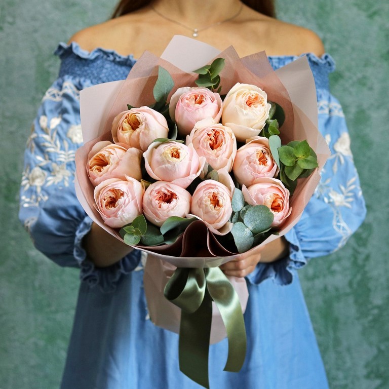 Букет из пионовидной розы сорта Джульетта. Вы можете выбрать любое количество цветов указанное в перечне к данному букету.
