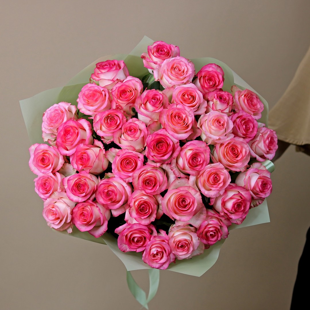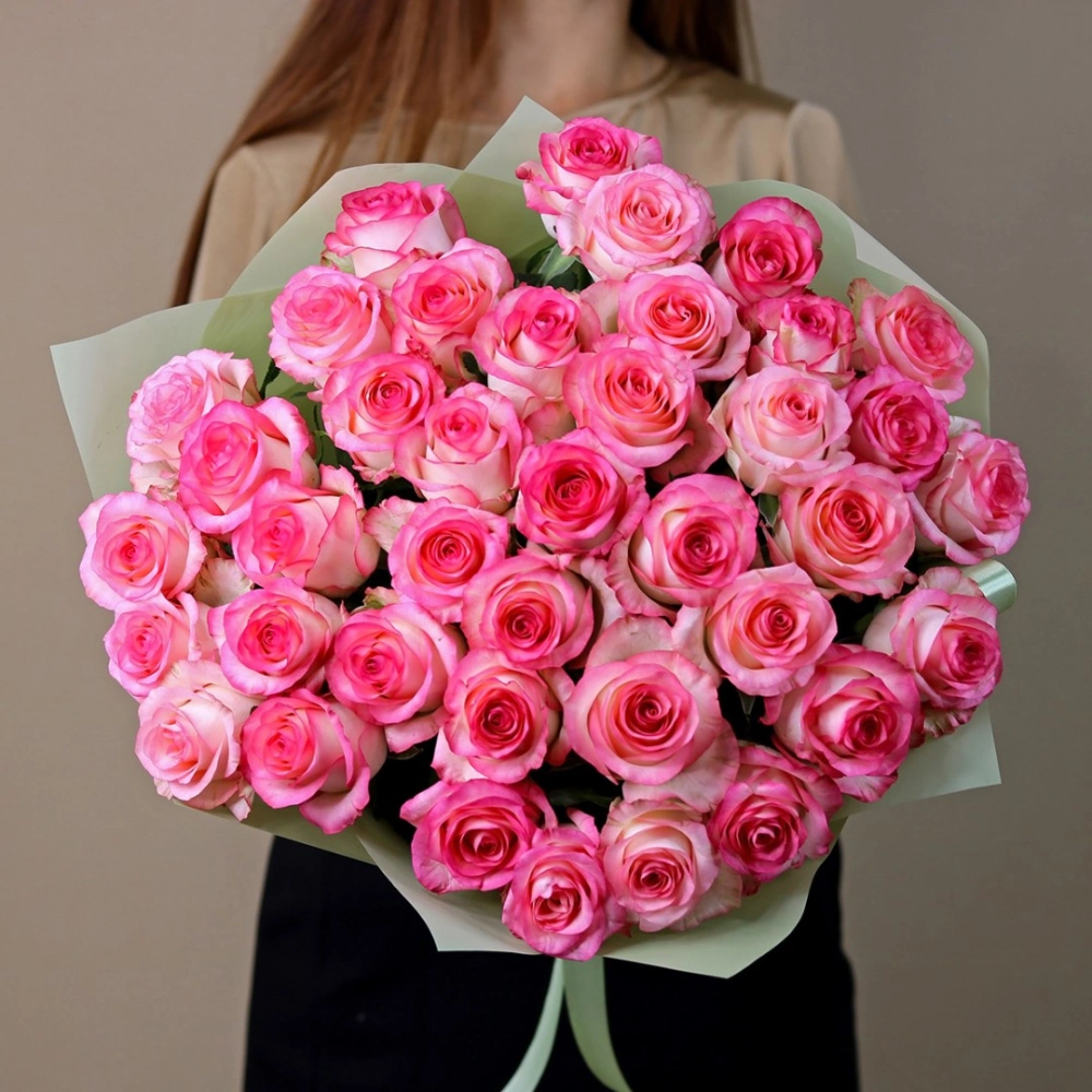 Букет из бело-розовых роз сорта Джумилия. Вы можете выбрать любое количество цветов указанное в перечне к данному букету.