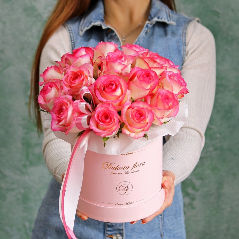 Цветы в коробках это композиции, составленные с использованием специальной губки Oasis (пиафлор) которая пропитана водой. Для того чтобы цветы дольше оставались свежими, добавляйте в нее немного воды каждый день.