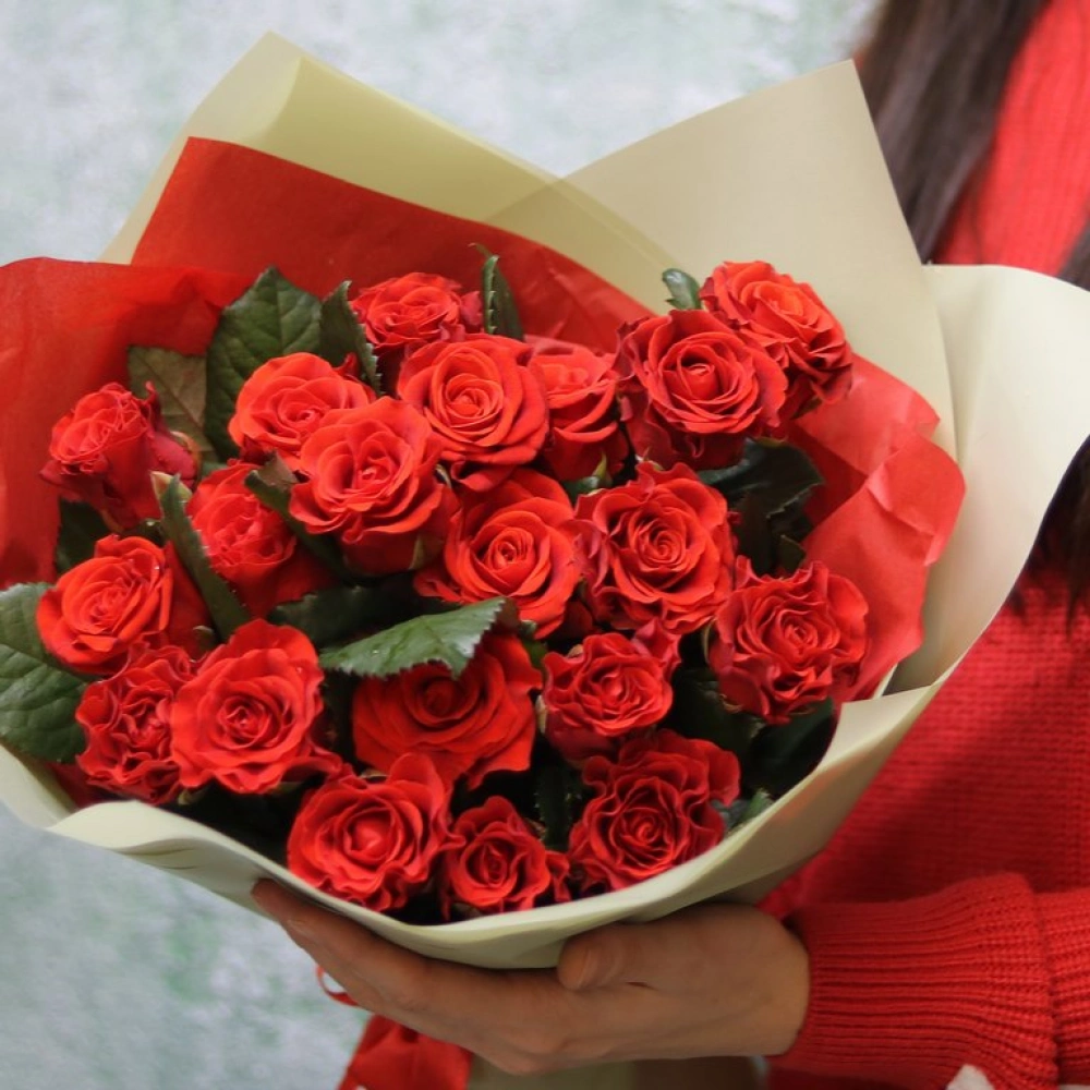 Букет из алых роз сорт Эль Торо. Вы можете выбрать любое количество цветов указанное в перечне к данному букету.