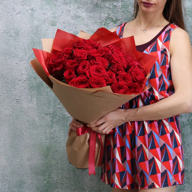 Букет из красных роз сорта Гран при. Вы можете выбрать любое количество цветов, указанное в перечне к данному букету.