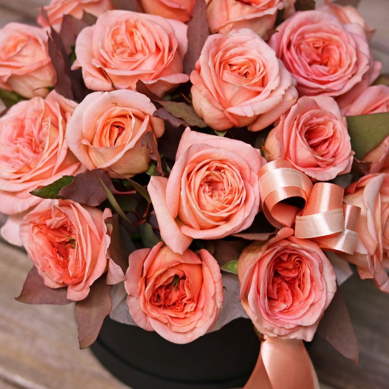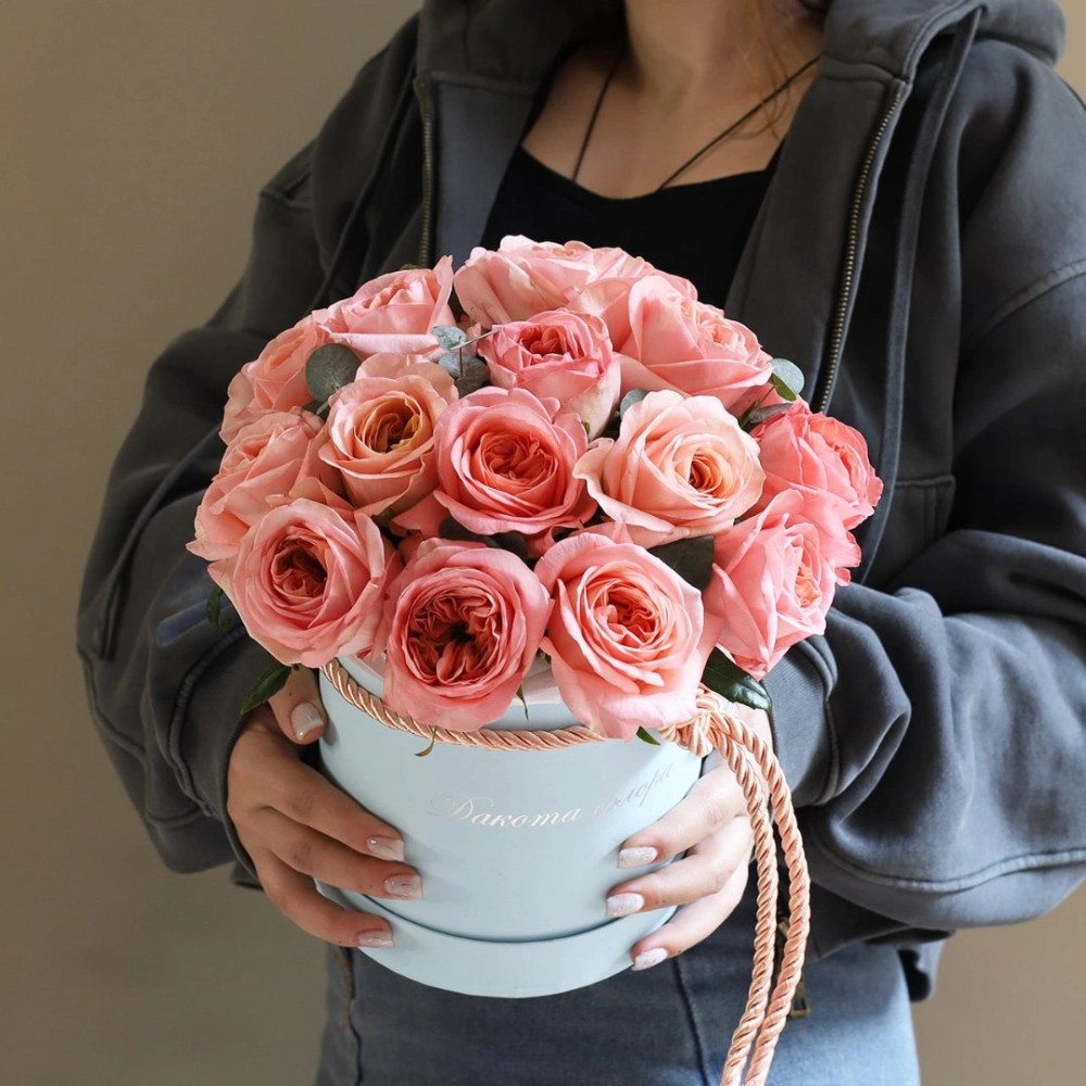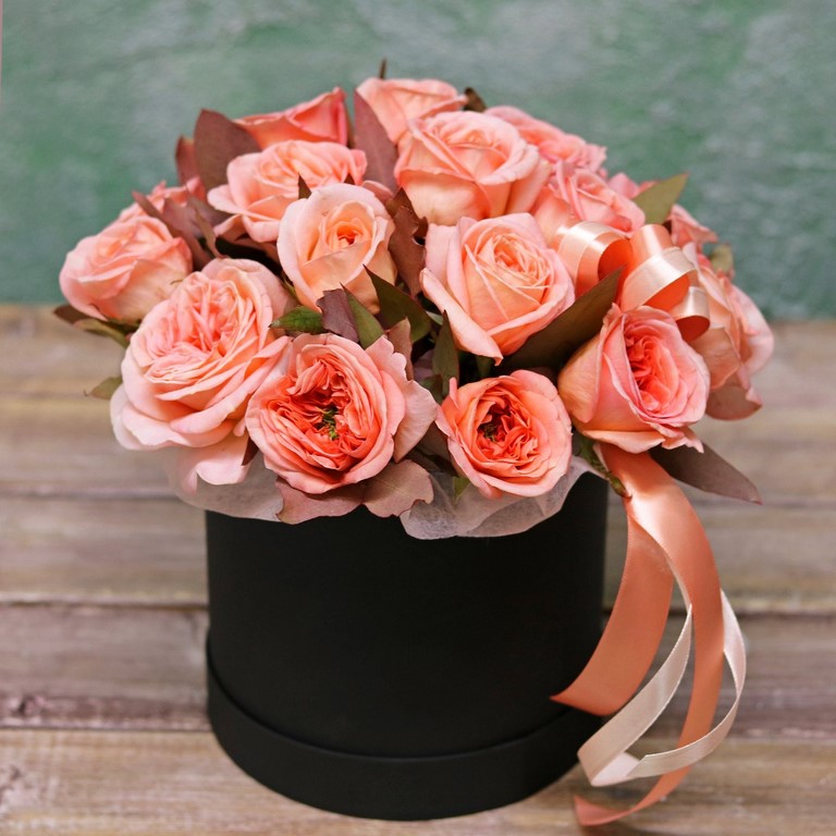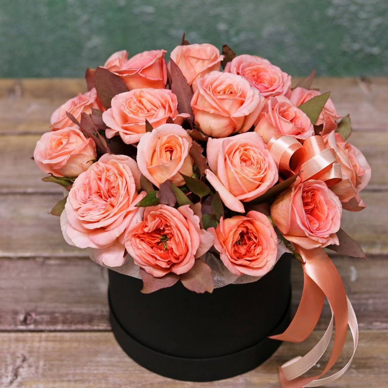 Цветы в коробках это композиции, составленные с использованием специальной губки Oasis (пиафлор) которая пропитана водой. Для того чтобы цветы дольше оставались свежими, добавляйте в нее немного воды каждый день.
