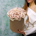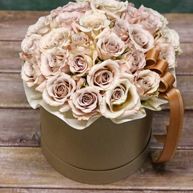 Цветы в коробках это композиции, составленные с использованием специальной губки Oasis (пиафлор) которая пропитана водой. Для того чтобы цветы дольше оставались свежими, добавляйте в нее немного воды каждый день.