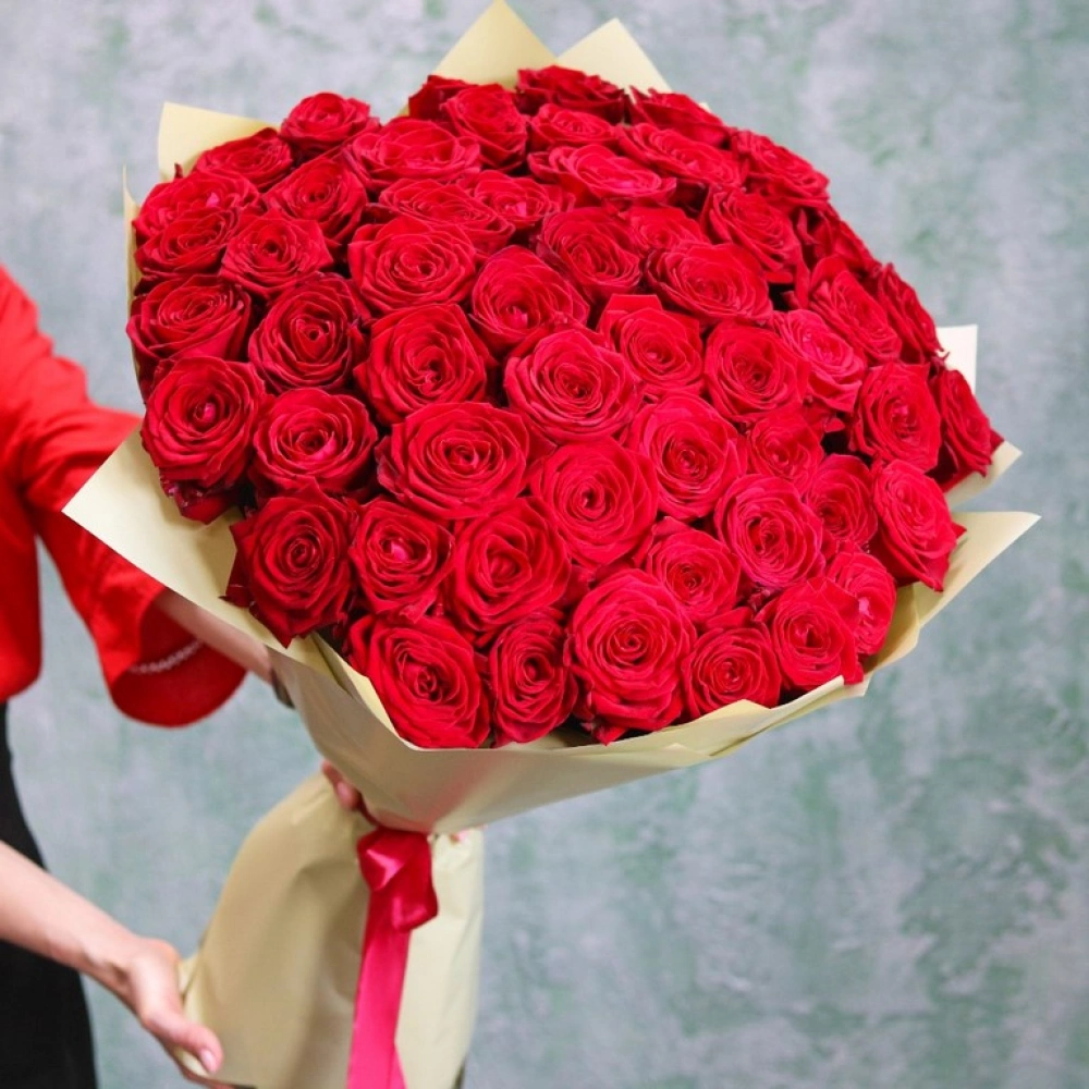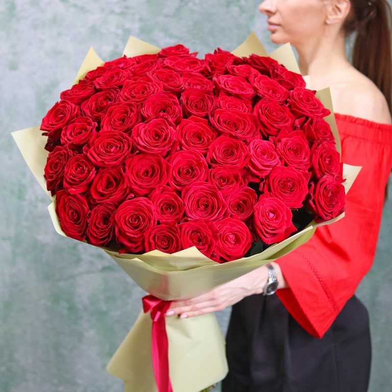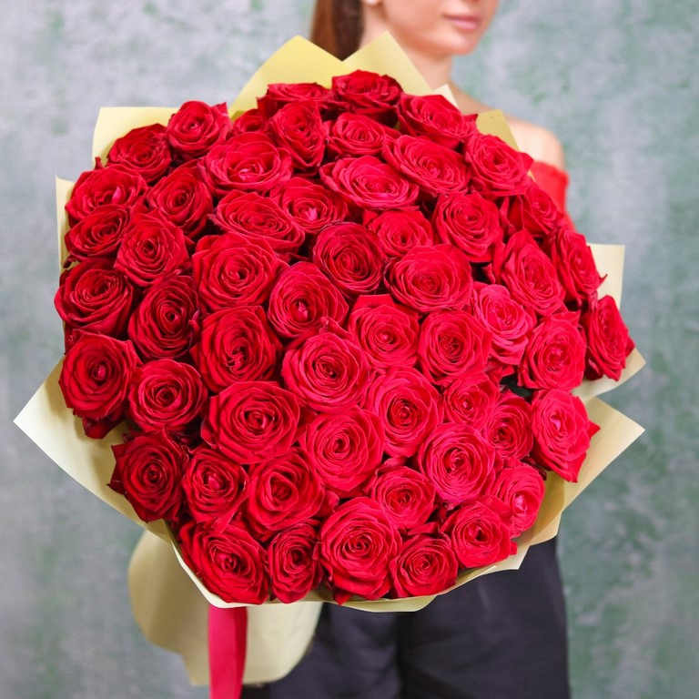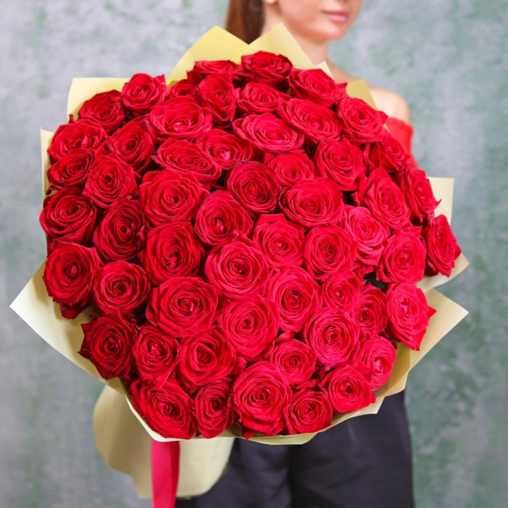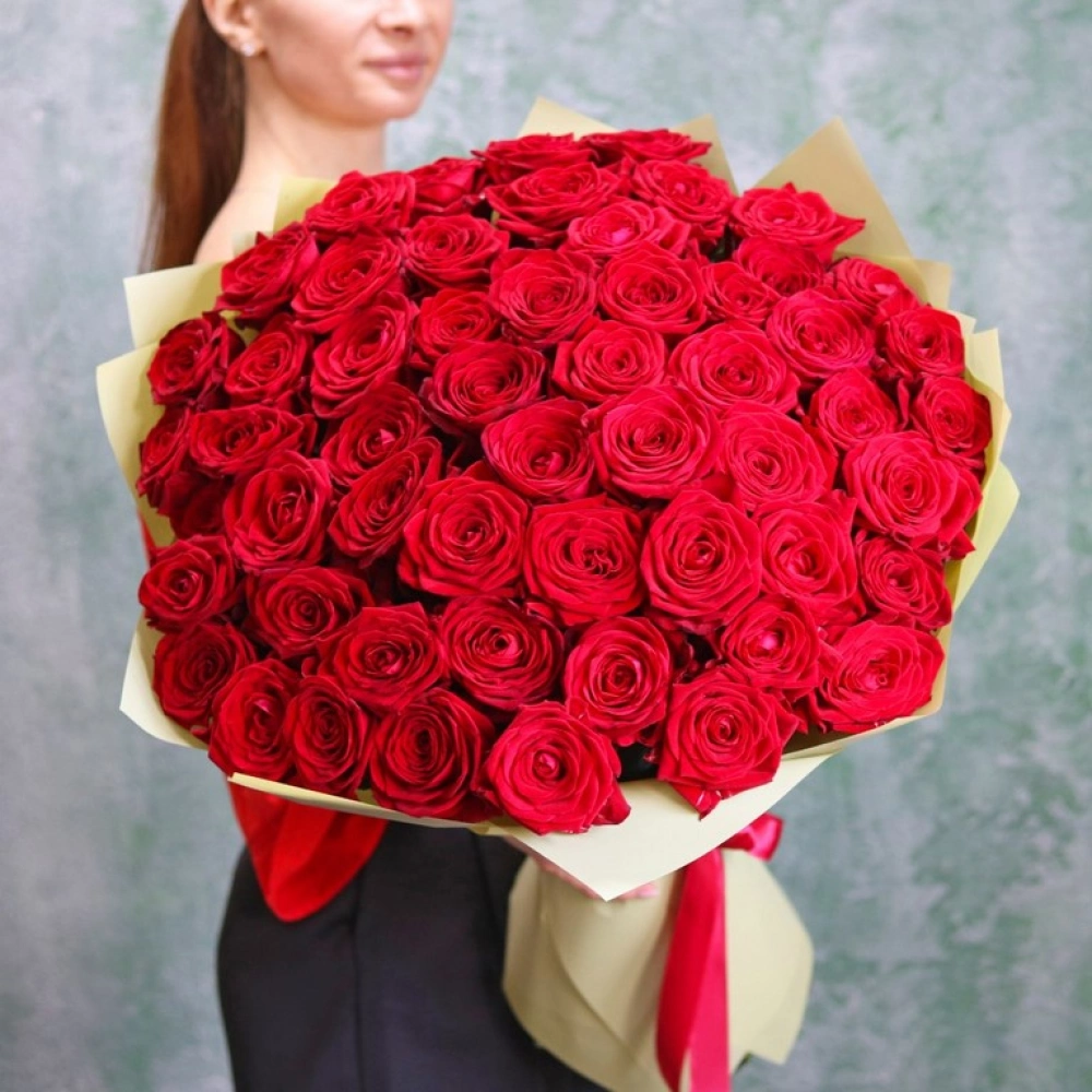 Букет из красных роз сорт Ред Наоми высотой 70 см. Вы можете выбрать любое количество цветов указанное в перечне к данному букету.