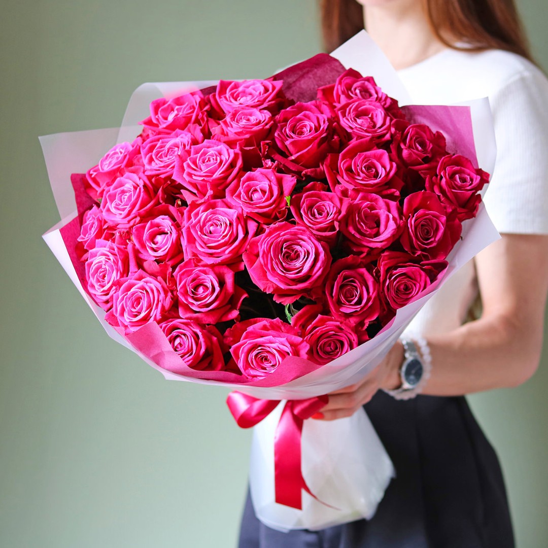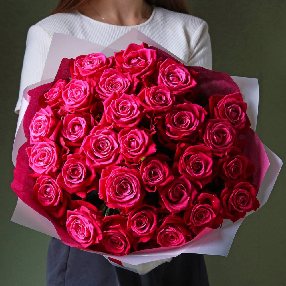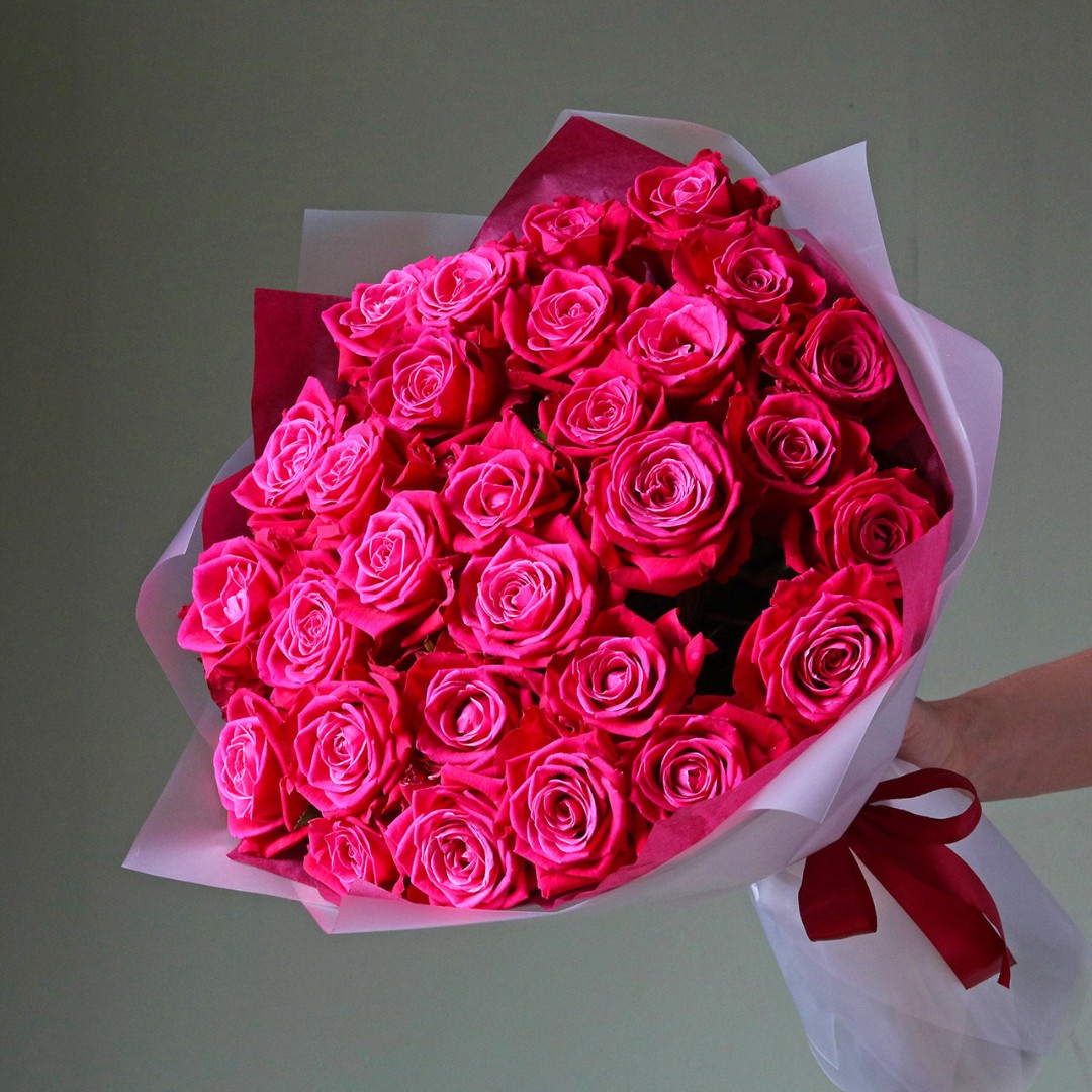 На фотографии букет из 29 роз.