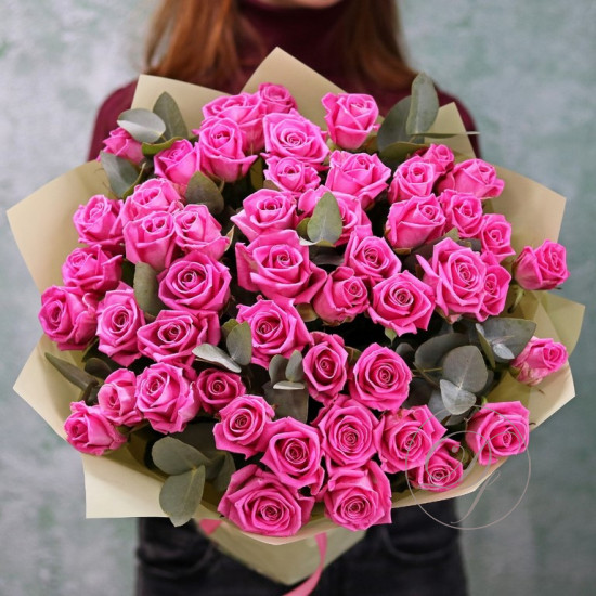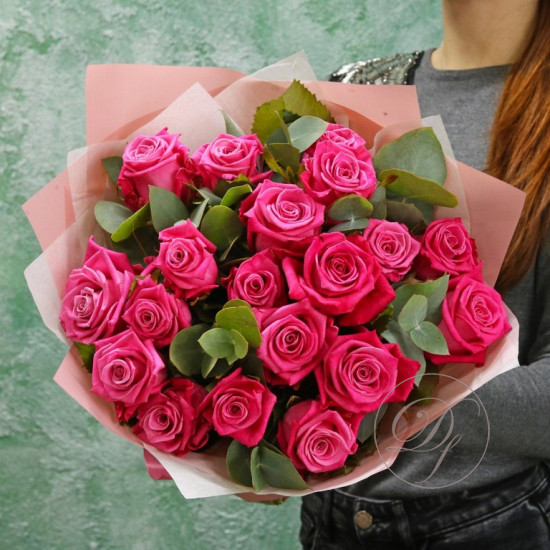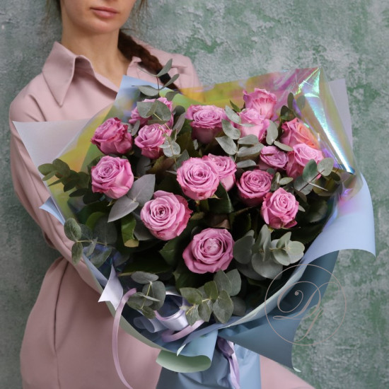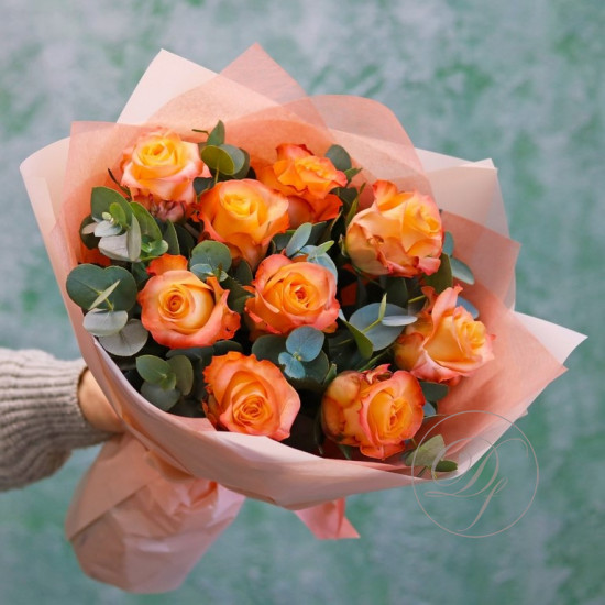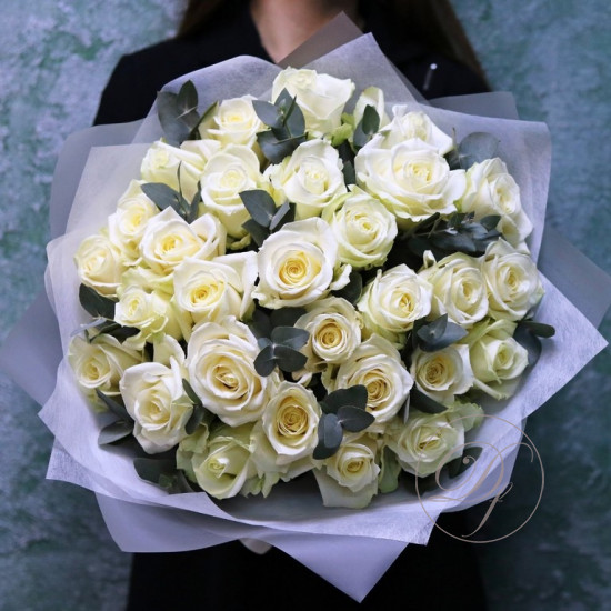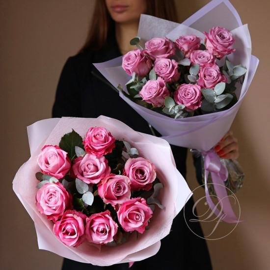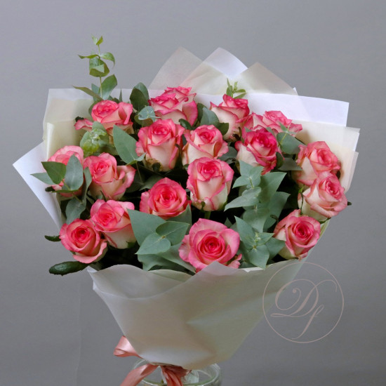 Розы с эвкалиптом в ассортименте