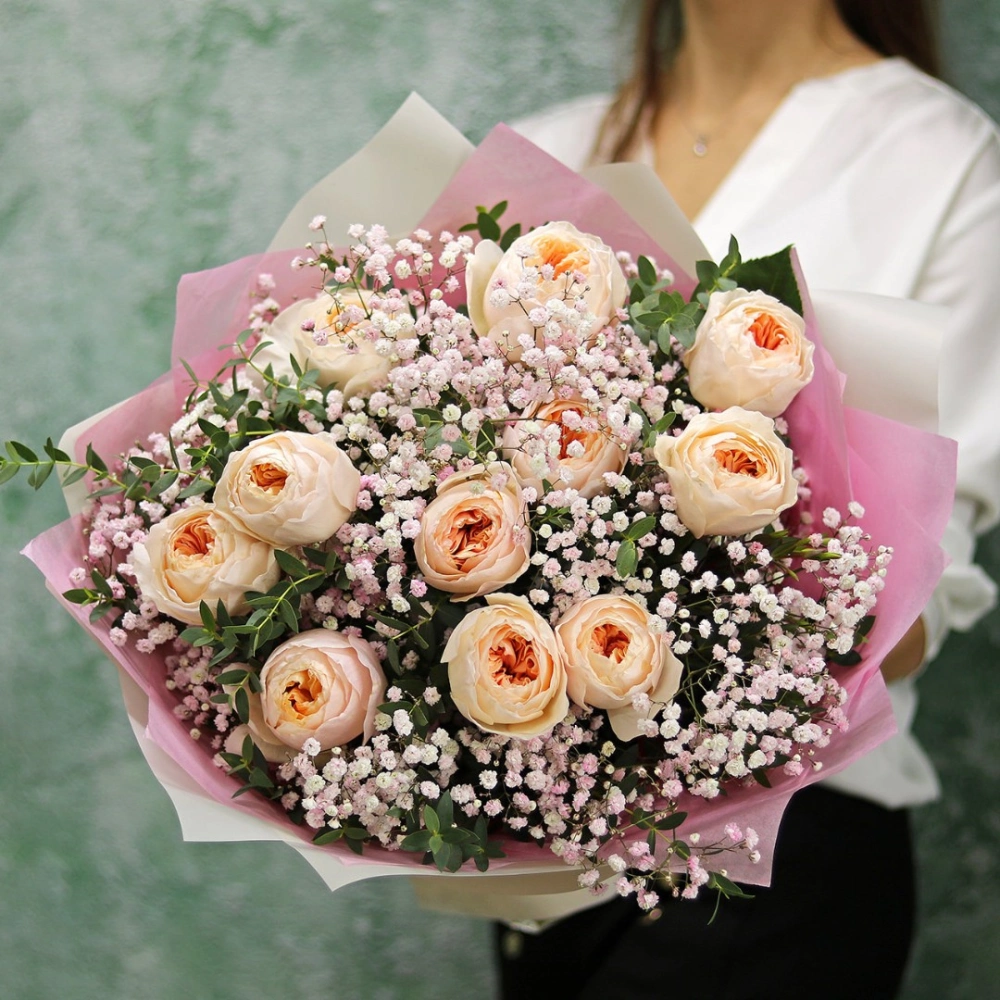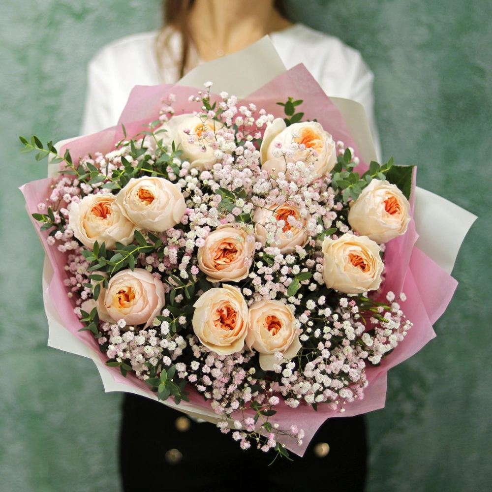 Букет из пионовидной розы сорта Джульетта. Вы можете выбрать любое количество цветов указанное в перечне к данному букету.