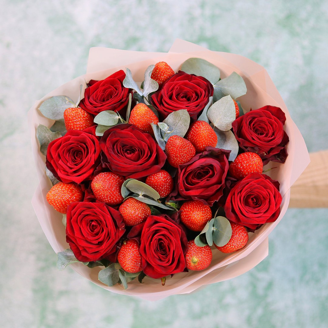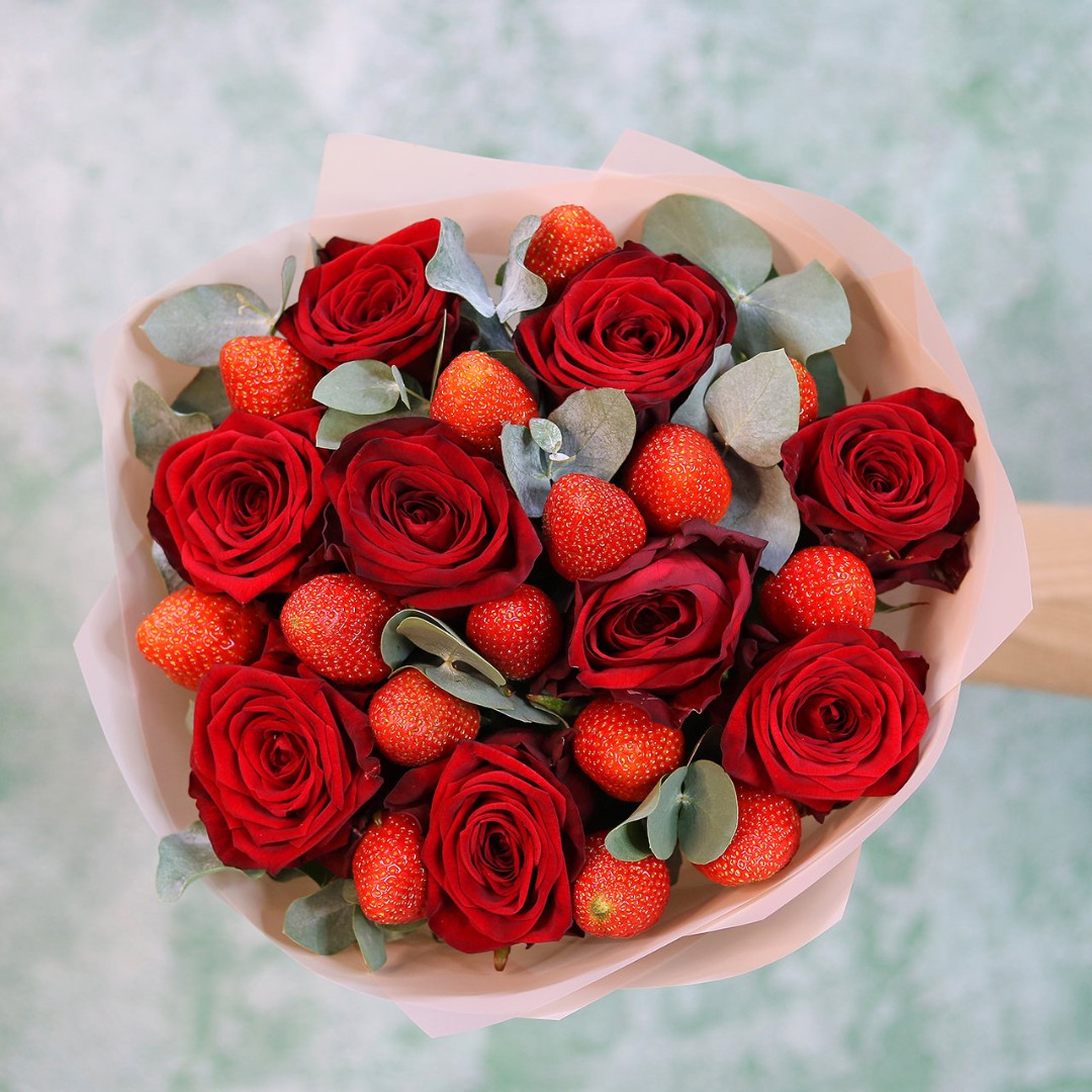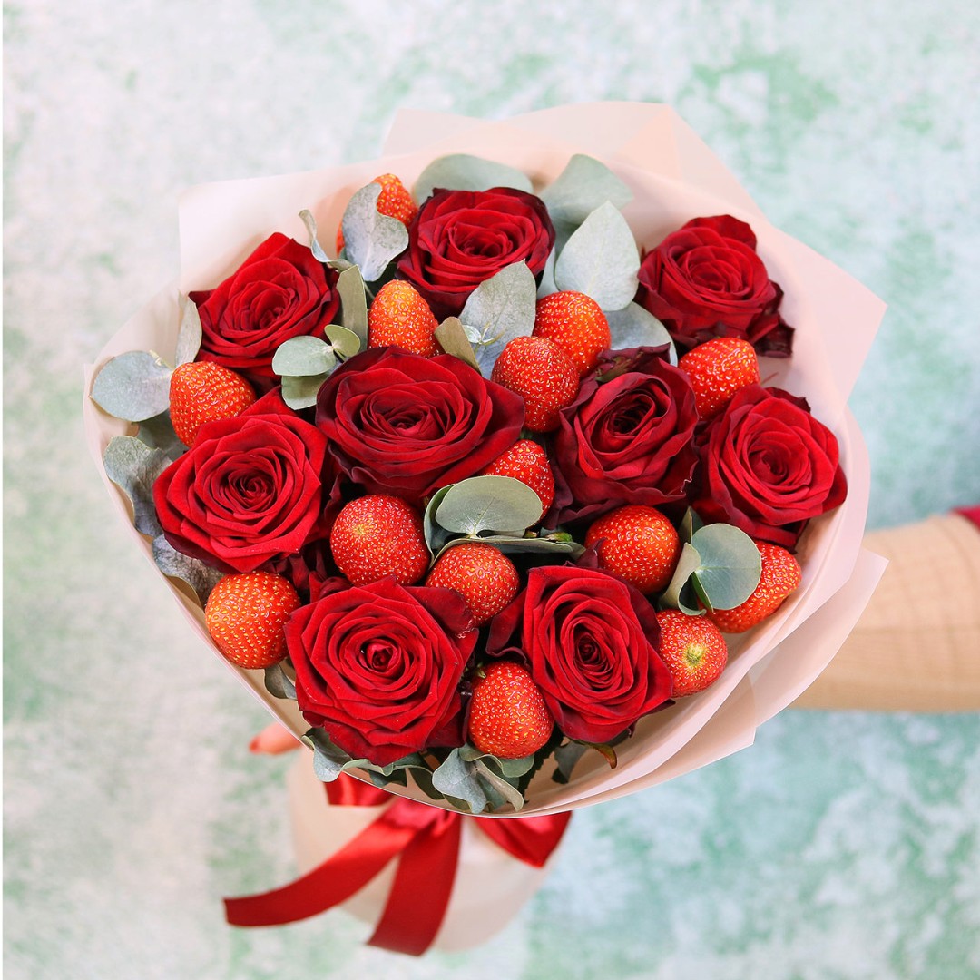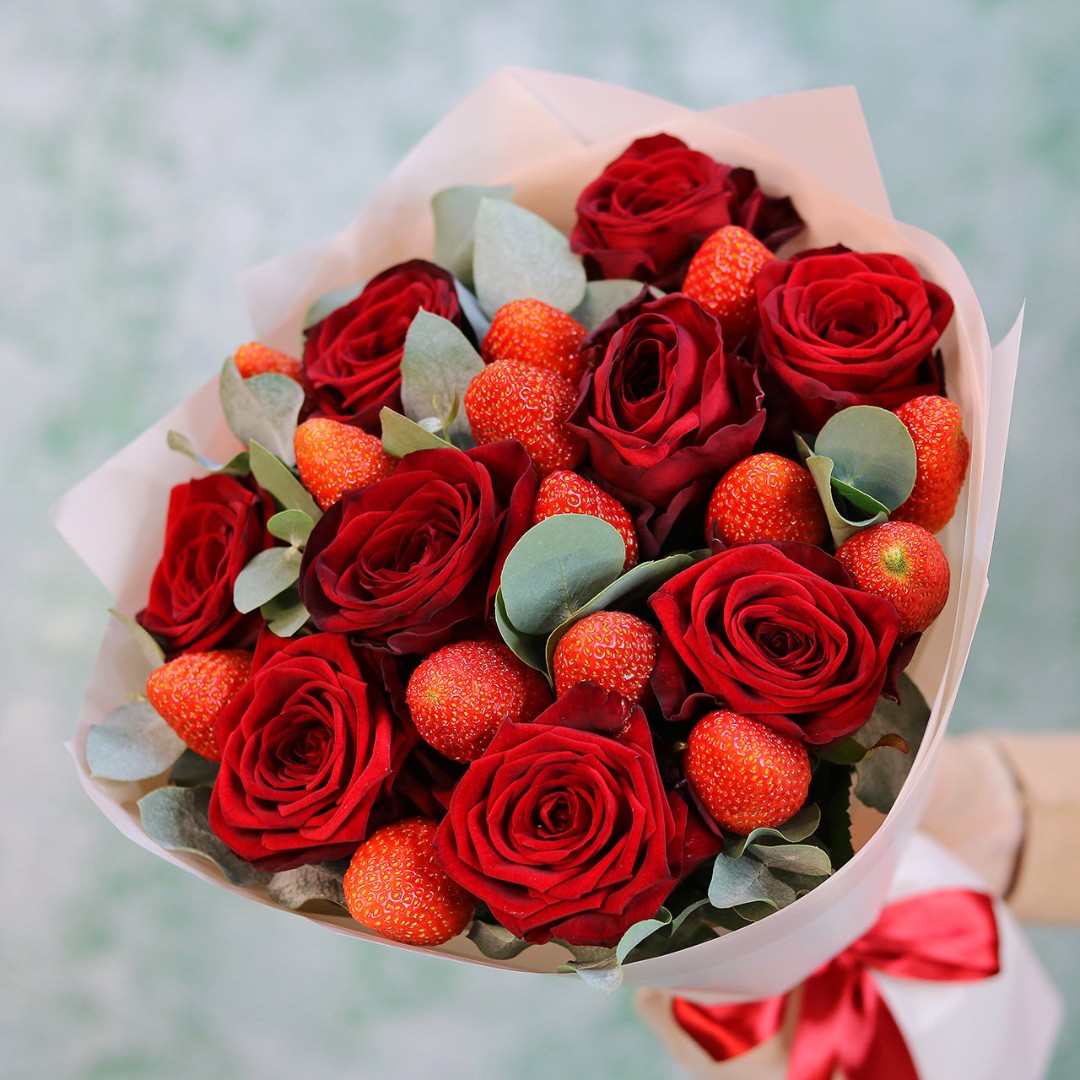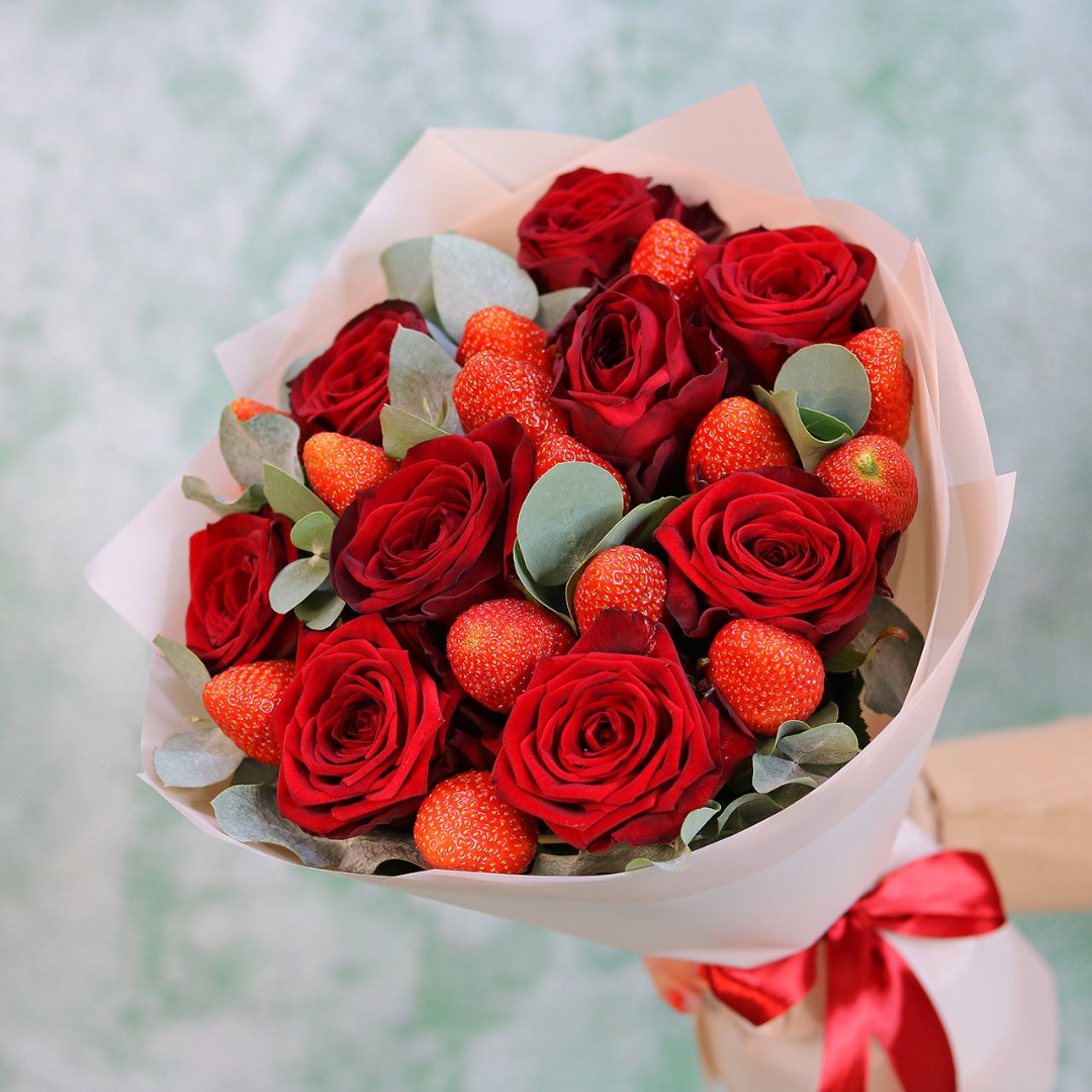 Розы с клубникой букет