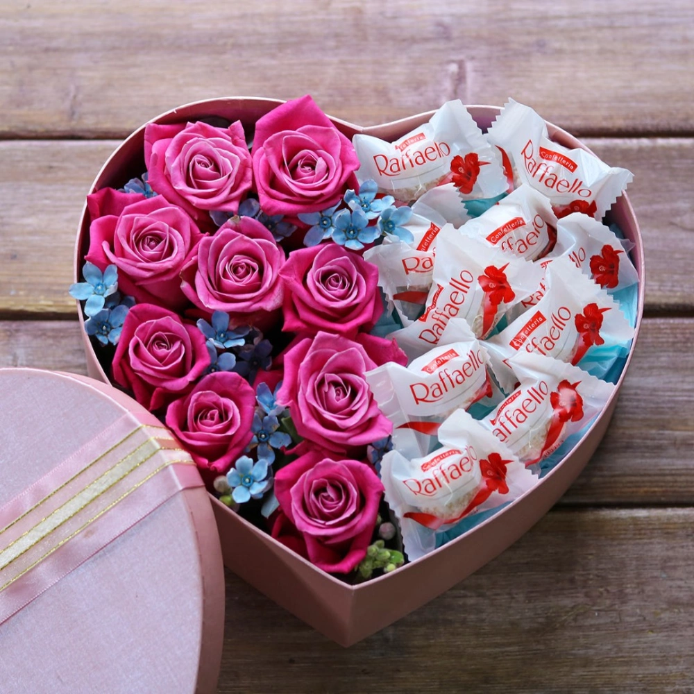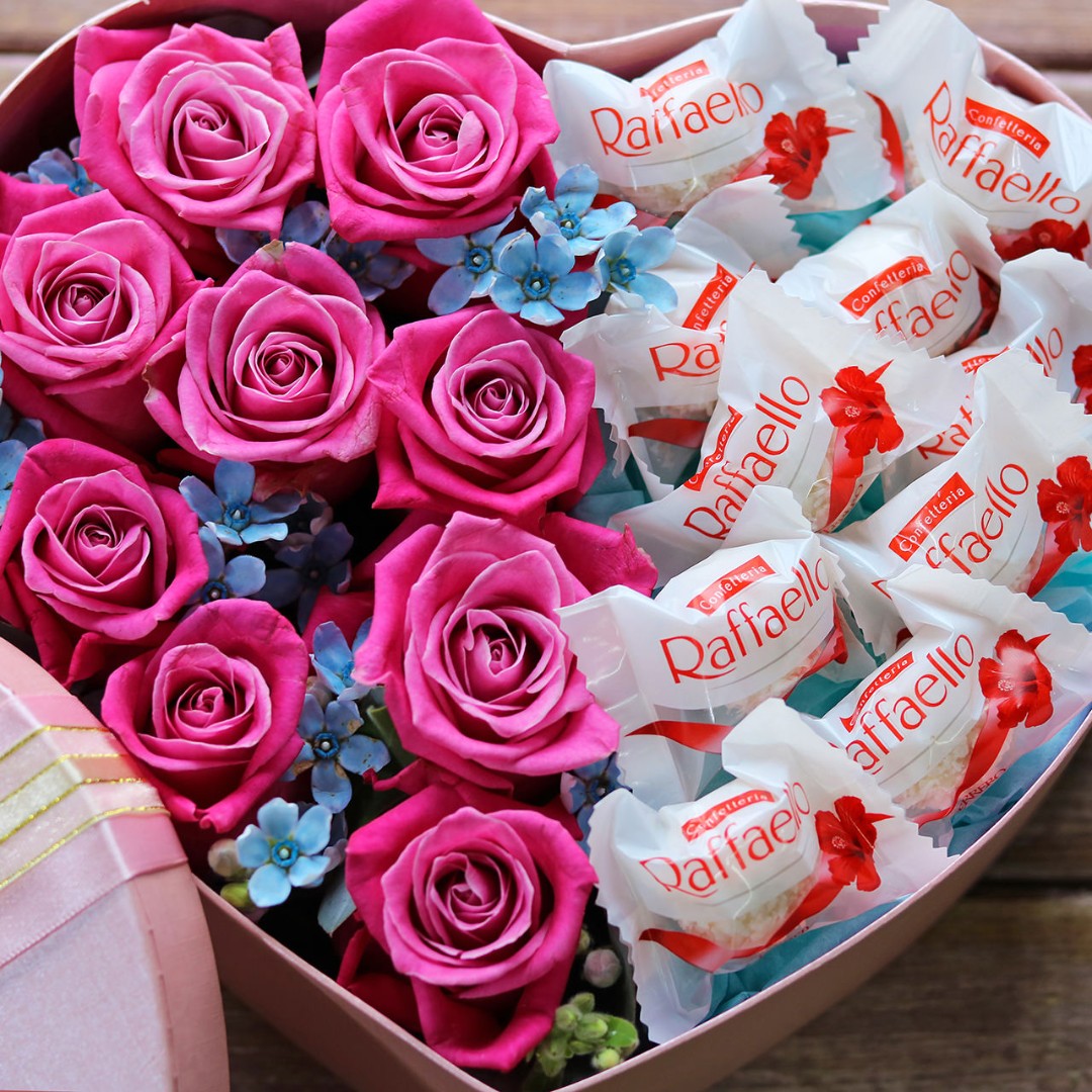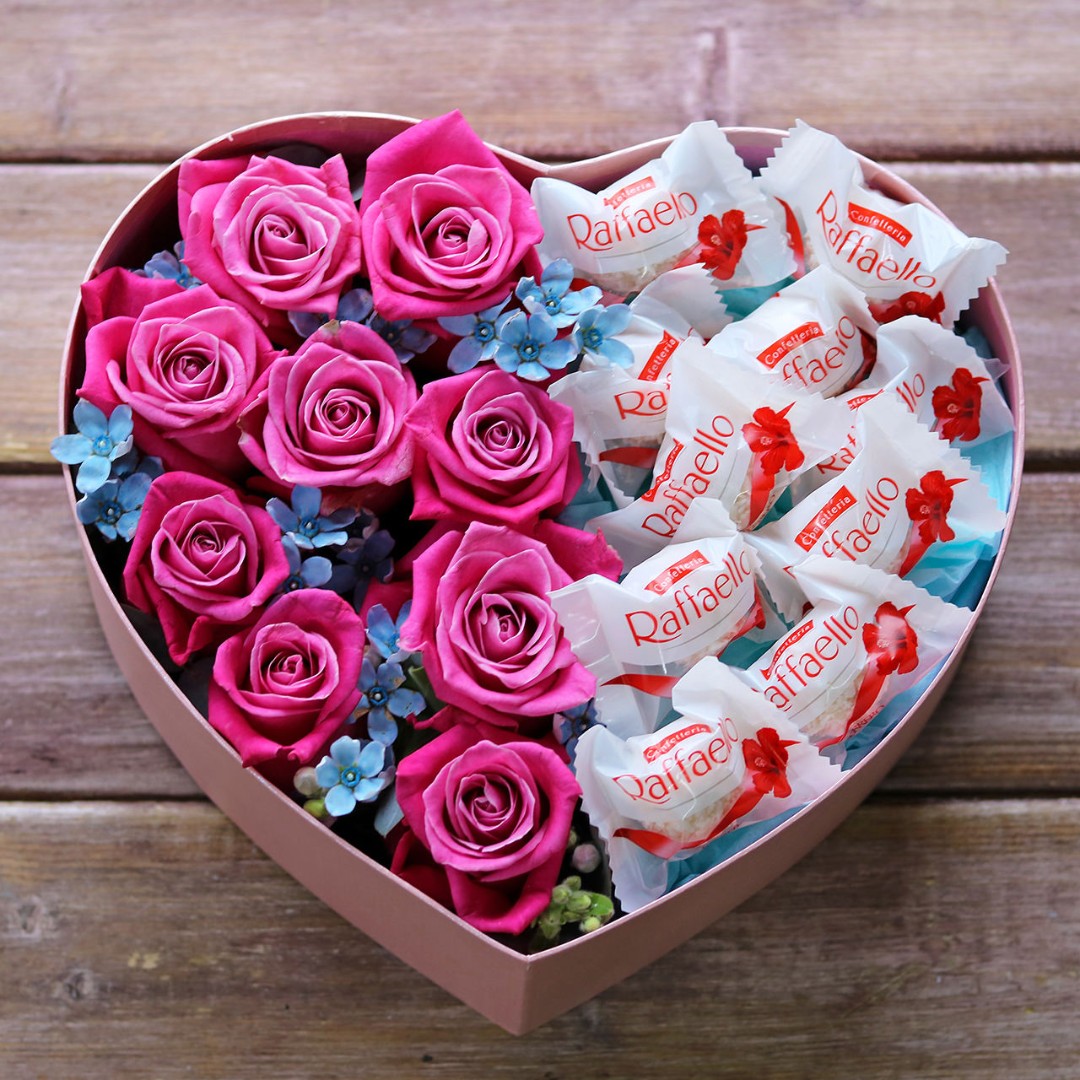 Сердце с розами и конфетами
