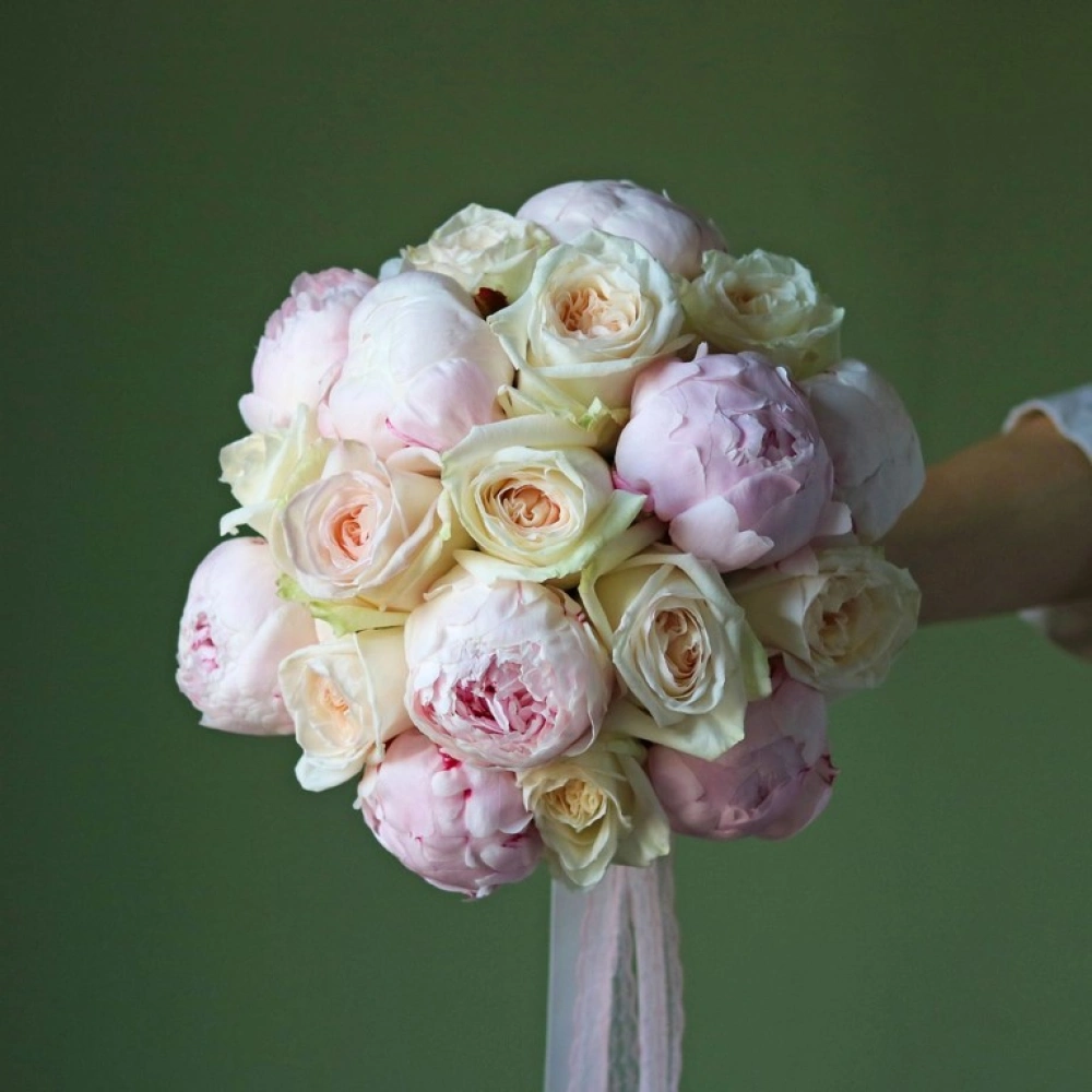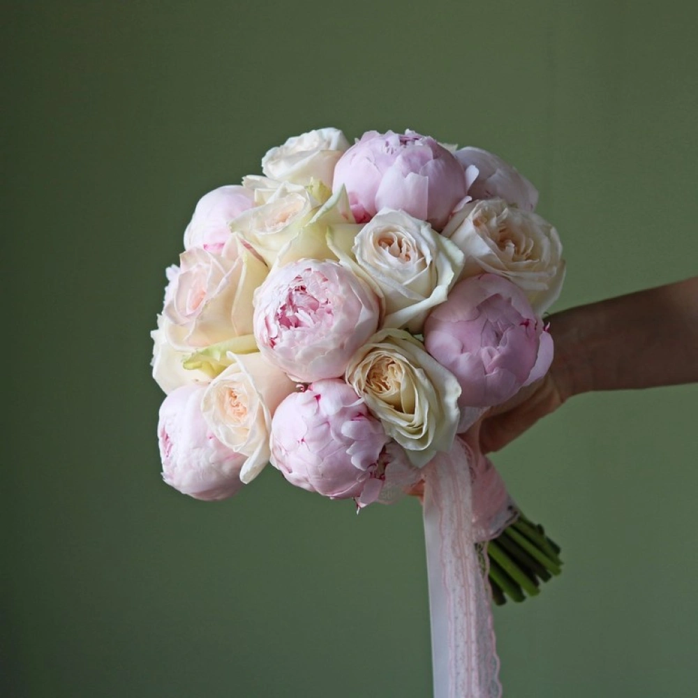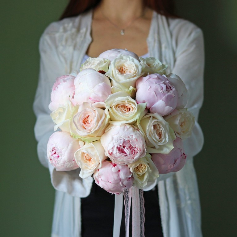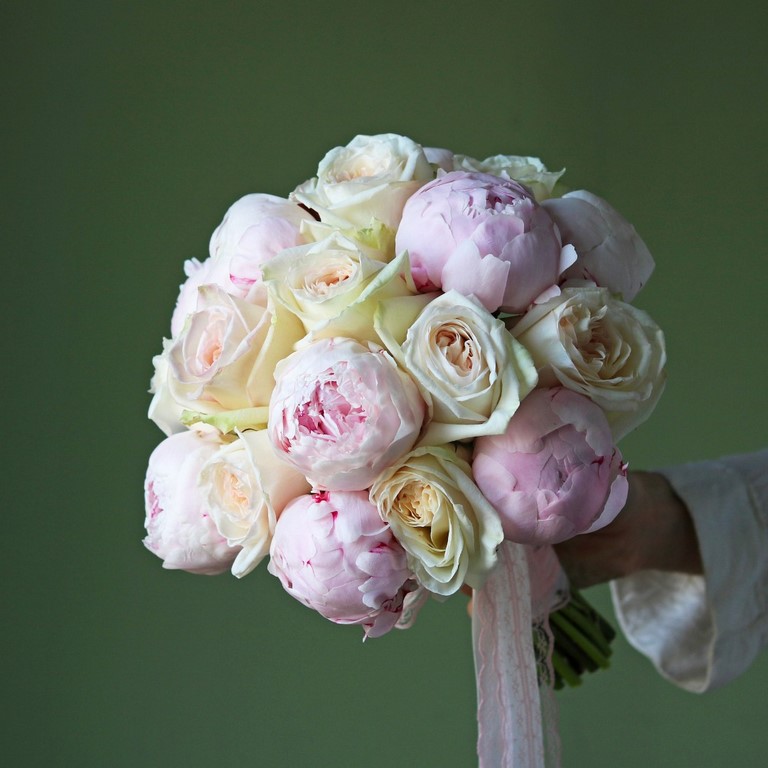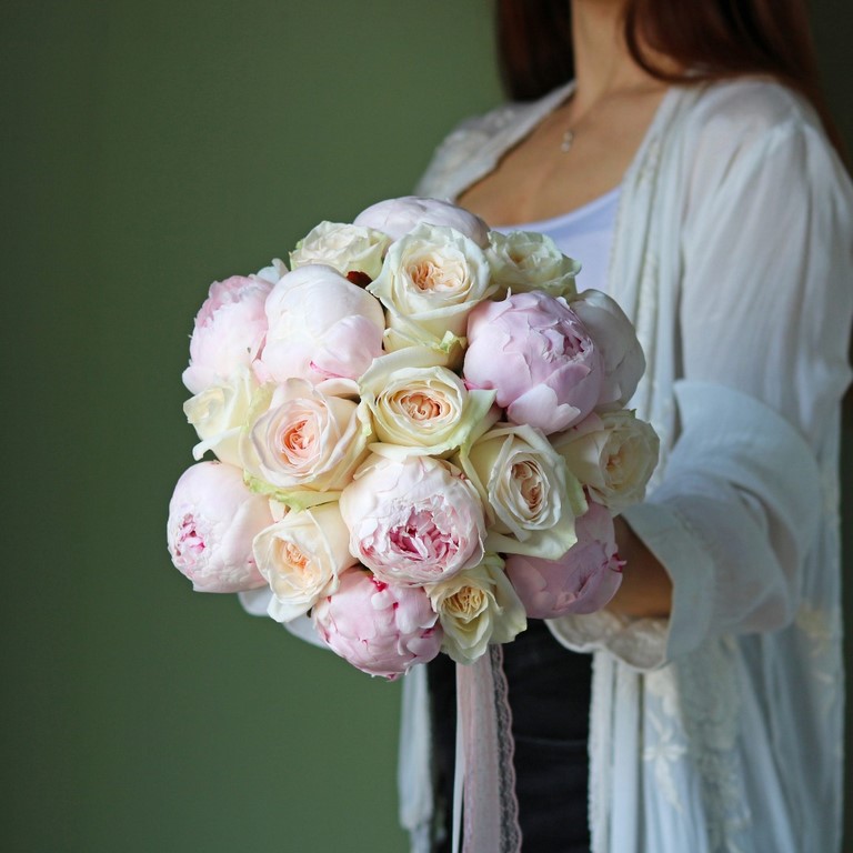 Букет невесты из пионов и пионовидных роз