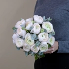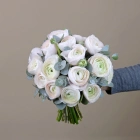 В составе букета: белые ранункулюсы.