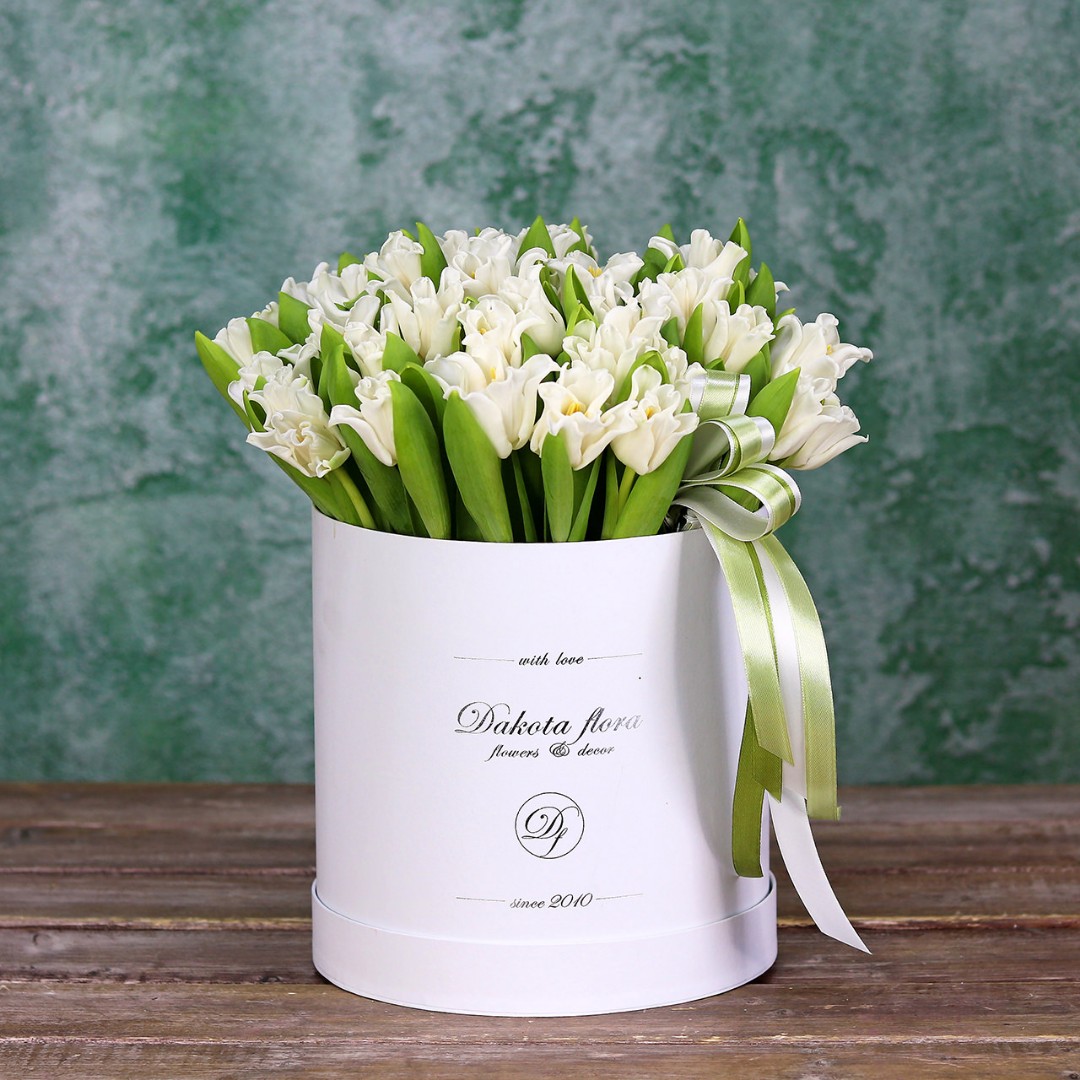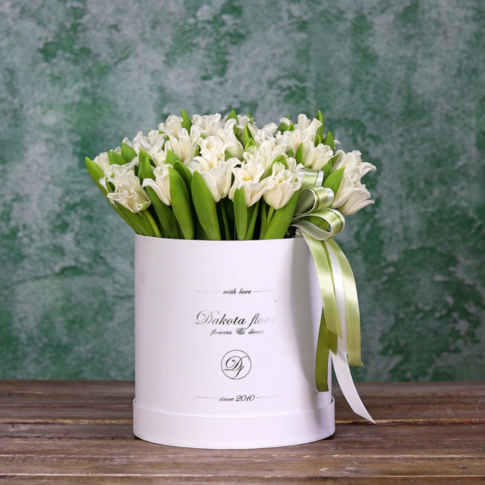 Цветы в коробках это композиции, составленные с использованием специальной губки Oasis (пиафлор) которая пропитана водой. Для того чтобы цветы дольше оставались свежими, добавляйте в нее немного воды каждый день.