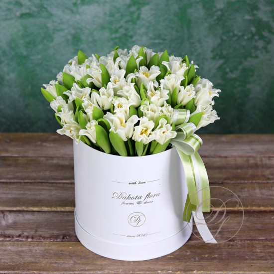 Цветы в коробках это композиции, составленные с использованием специальной губки Oasis (пиафлор) которая пропитана водой. Для того чтобы цветы дольше оставались свежими, добавляйте в нее немного воды каждый день.