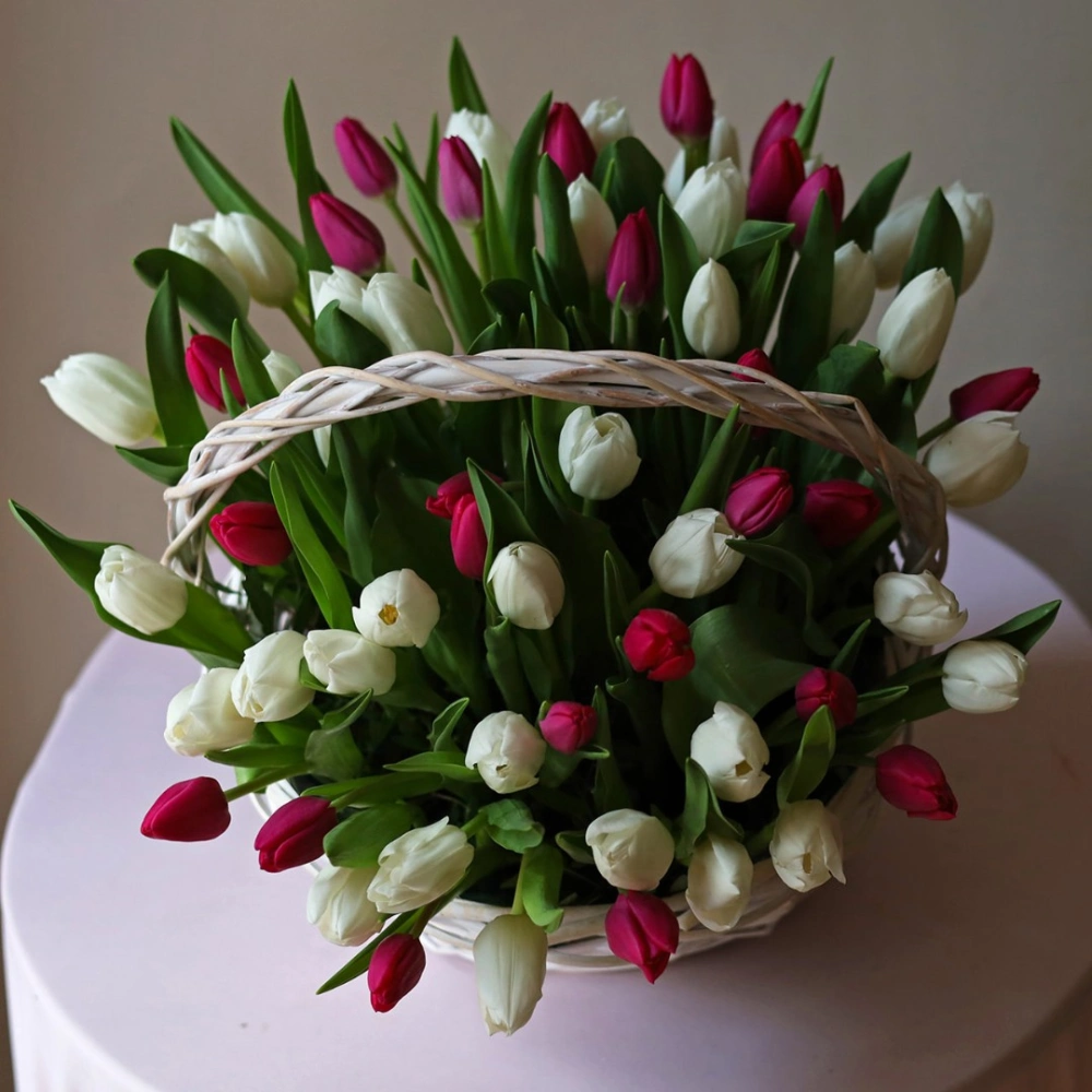 Корзина тюльпанов: Вдохновение весны в каждом лепестке! Погрузитесь в атмосферу весеннего пробуждения с нашей изысканной корзиной тюльпанов! Эти яркие цветы, олицетворяющие радость и надежду, станут идеальным подарком для ваших близких или украшением вашего дома. Каждый тюльпан в нашей корзине отобран с любовью и заботой, чтобы подарить вам не только красоту, но и свежесть. Нежные оттенки, от ярко-красного до нежно-розового, создают гармоничное сочетание, которое поднимет настроение и наполнит пространство светом.