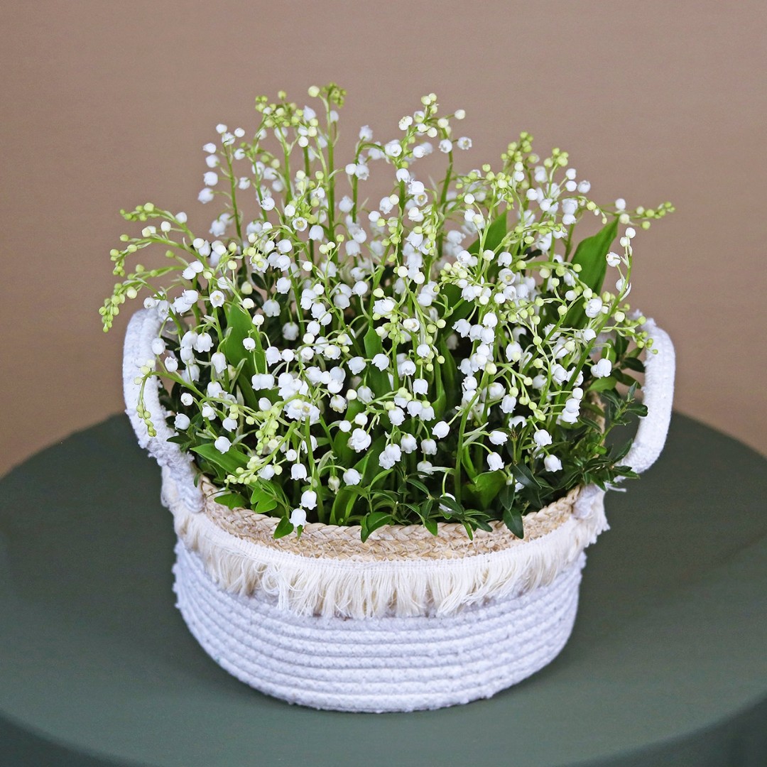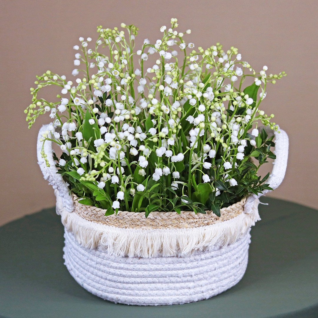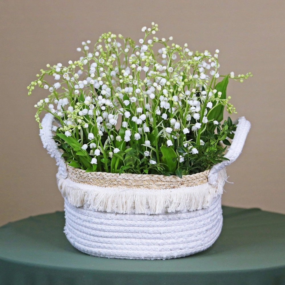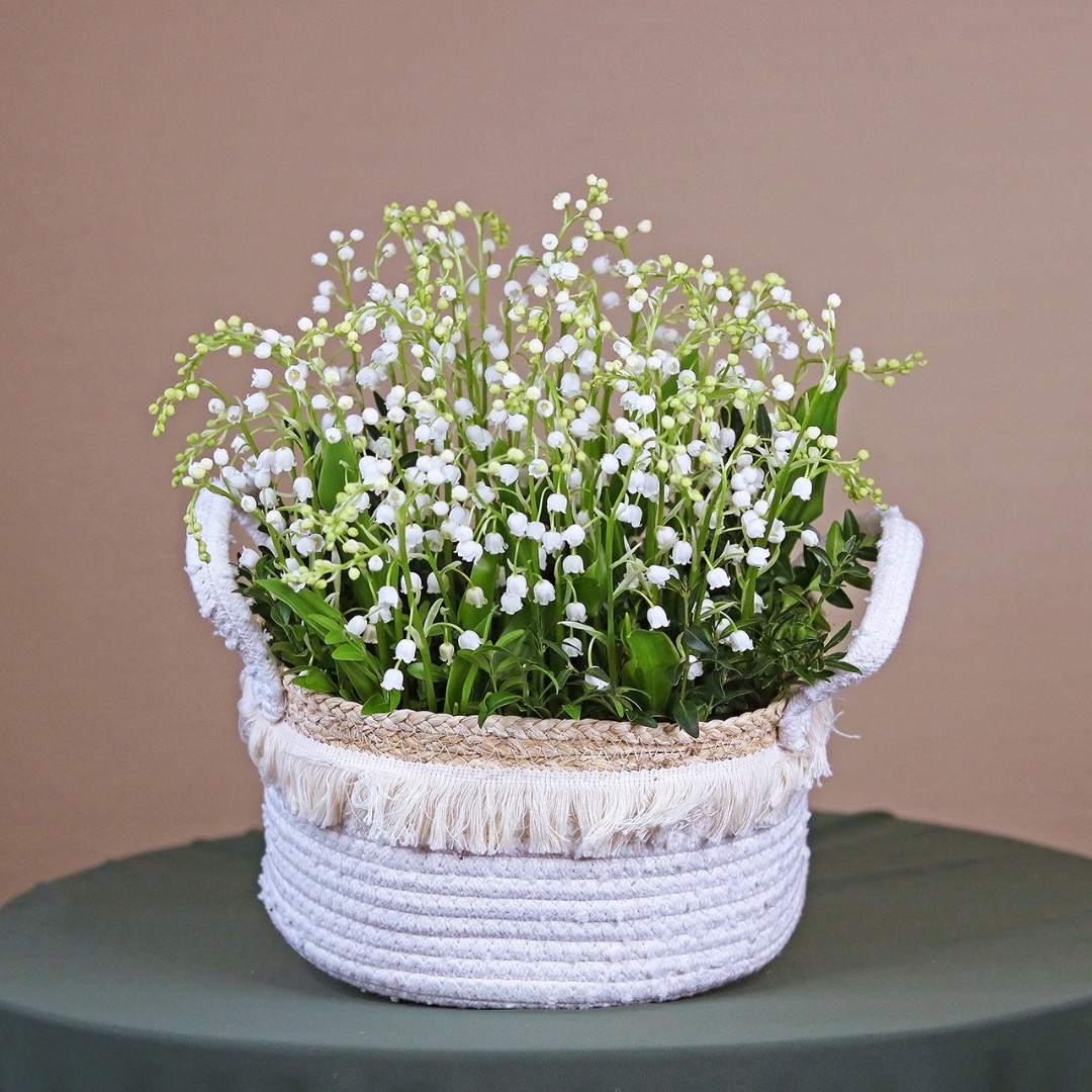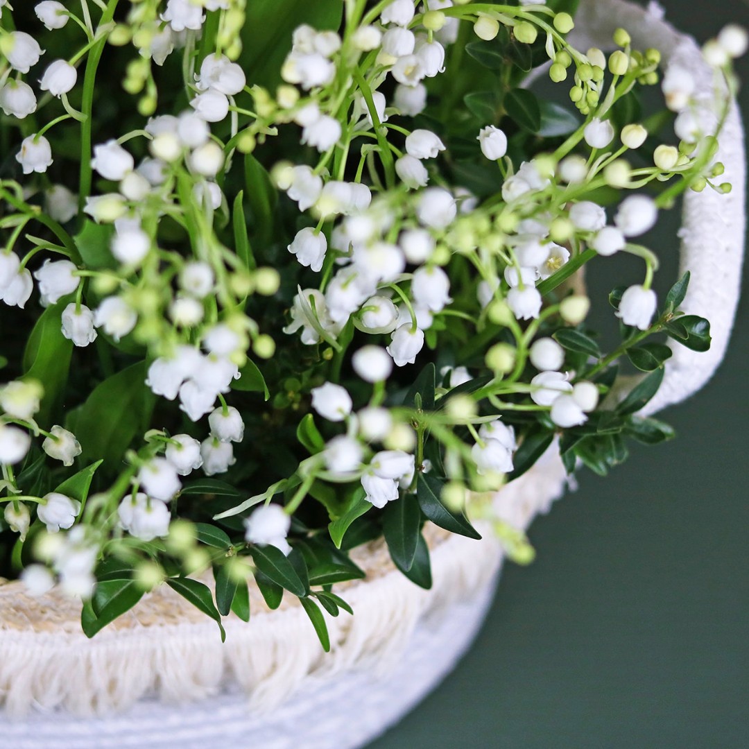 Вязанная корзинка с ландышами