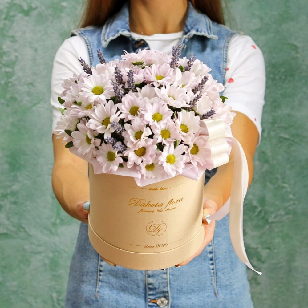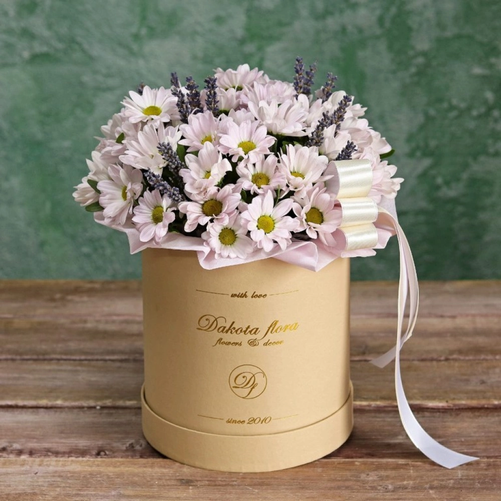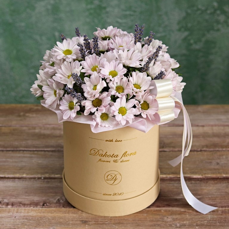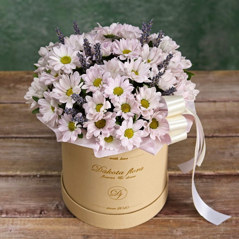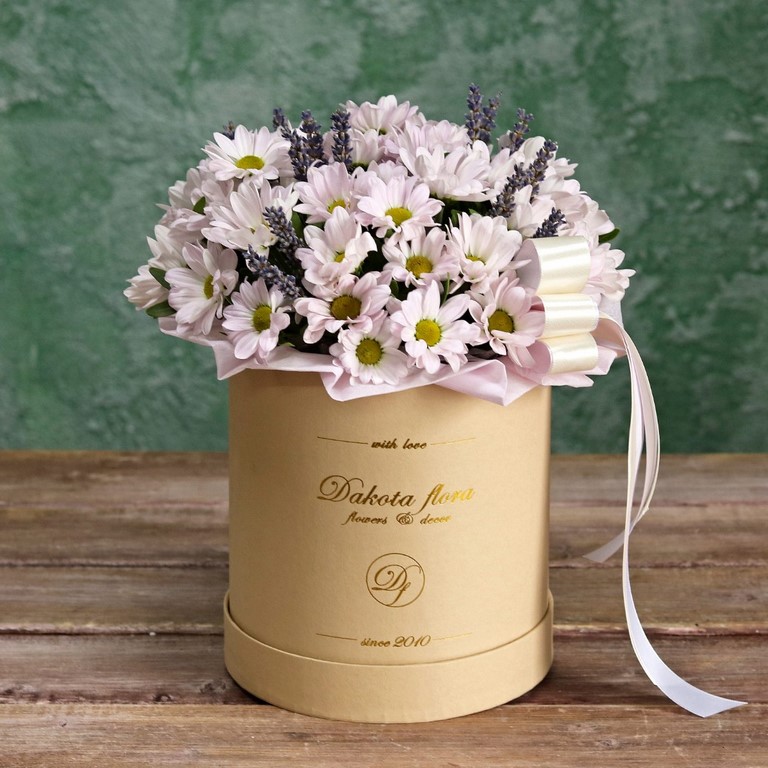 Цветы в коробках это композиции, составленные с использованием специальной губки Oasis (пиафлор) которая пропитана водой. Для того чтобы цветы дольше оставались свежими, добавляйте в нее немного воды каждый день.