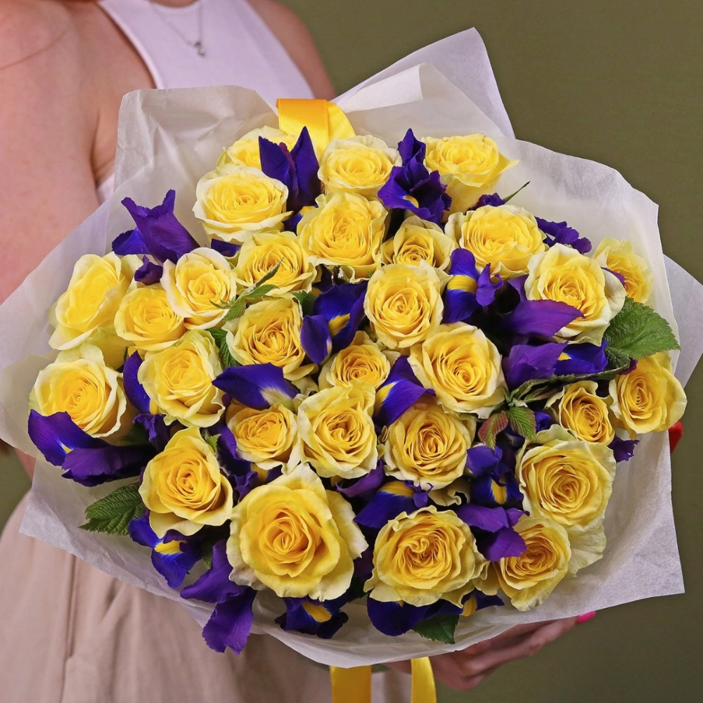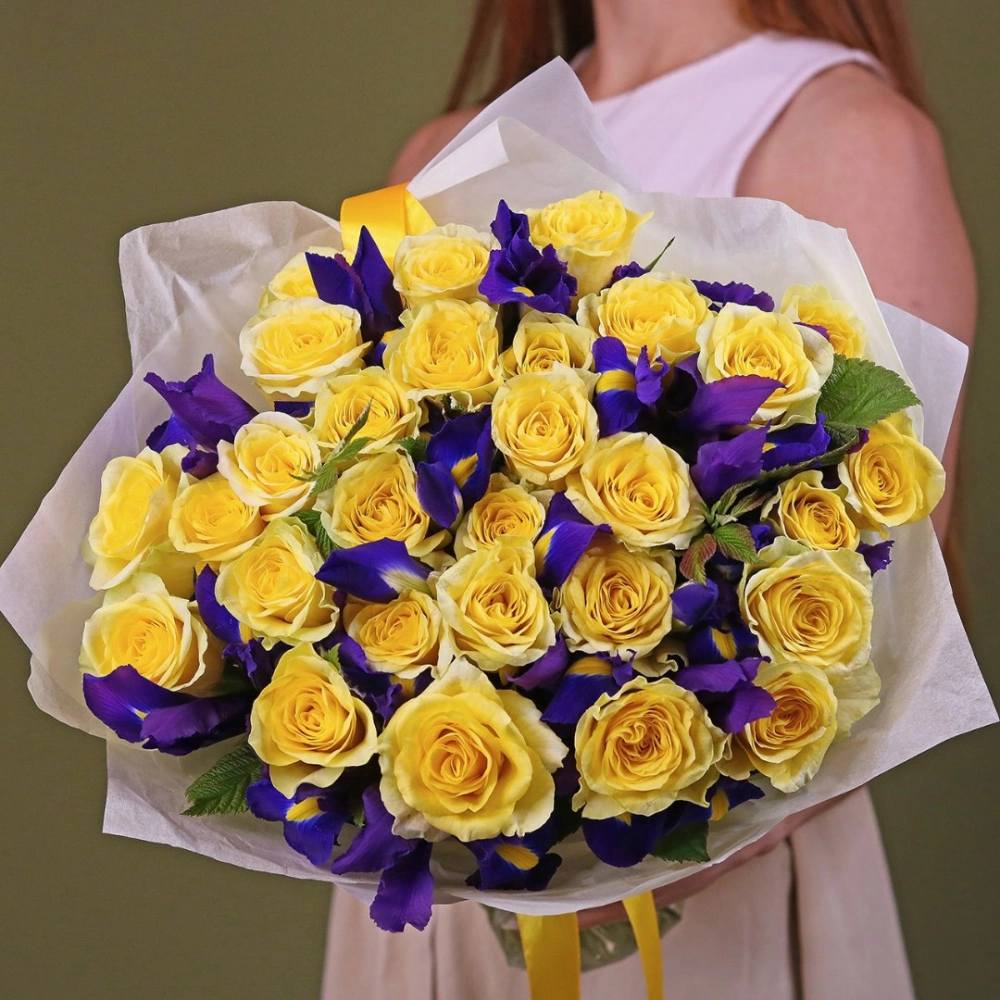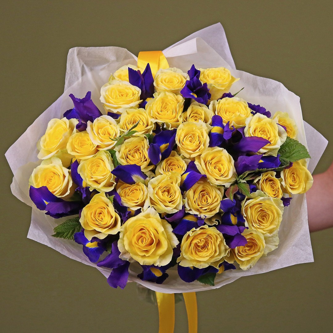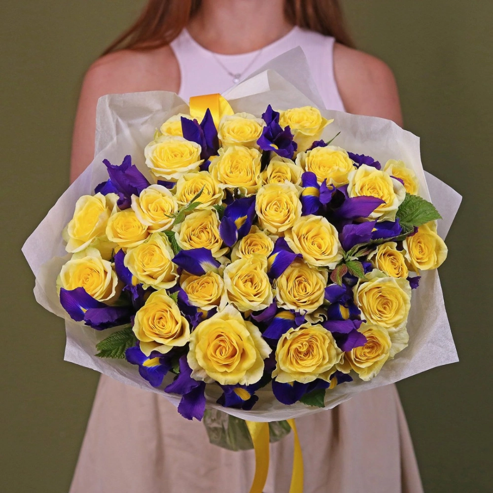 Букет из Роз с ирисами. Вы можете выбрать любое количество цветов указанное в перечне к данному букету.